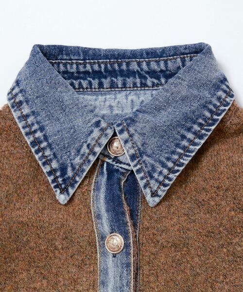 デニム × ニット プリーツアップツーインワン カーディガン カジュアル デニム カーディガン セーター 秋冬 ジャケット レイジースタイル セーターコート