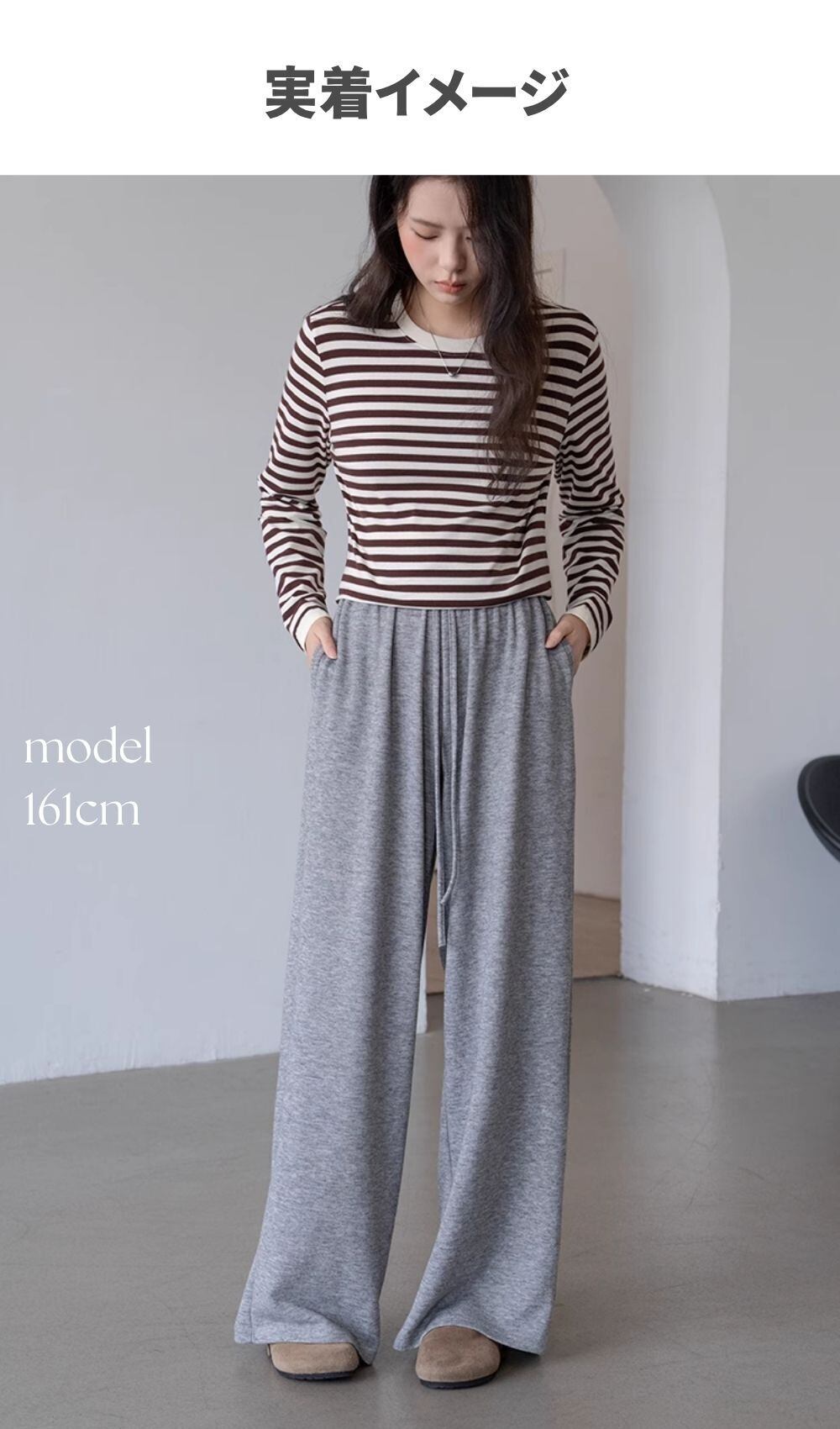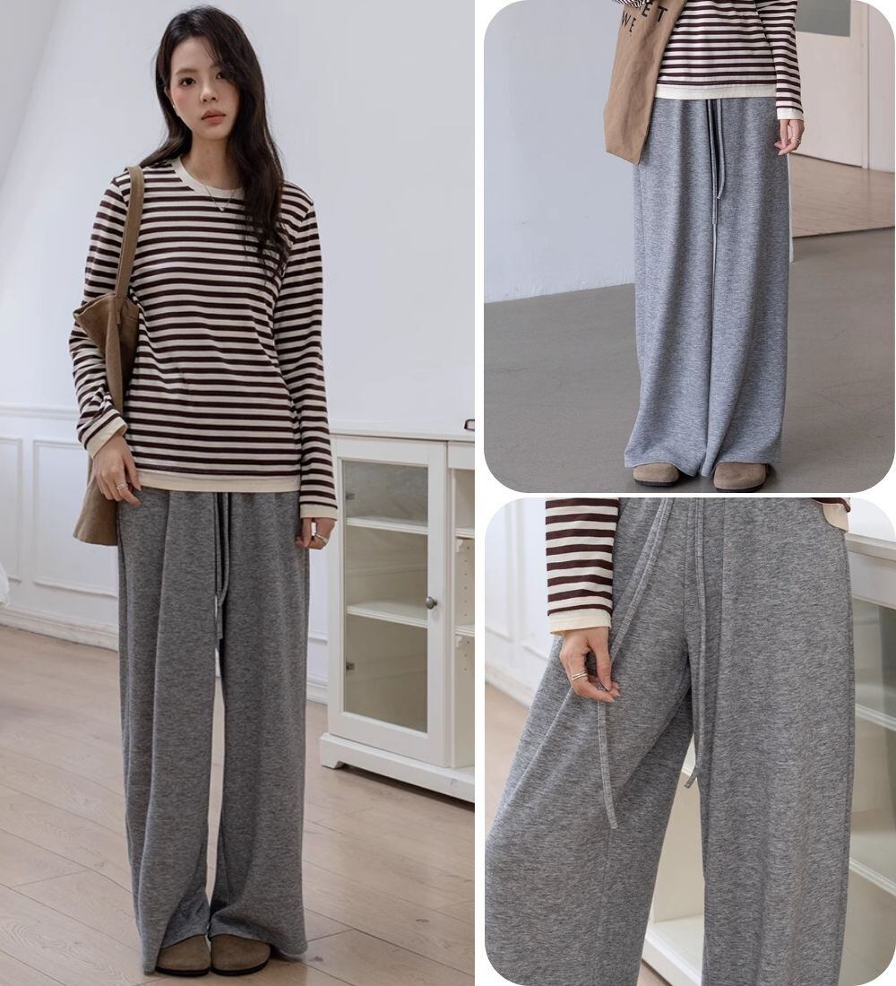 ワイドパン ルーズフィット カジュアルパンツ スポーツパンツ レディース おしゃれ 大人可愛い トレンド キレイめ 25 秋 A/W 秋冬新作 グレー色 ゴムウエスト ハイウエスト ドレープ感あり ストレートカット