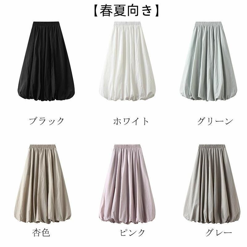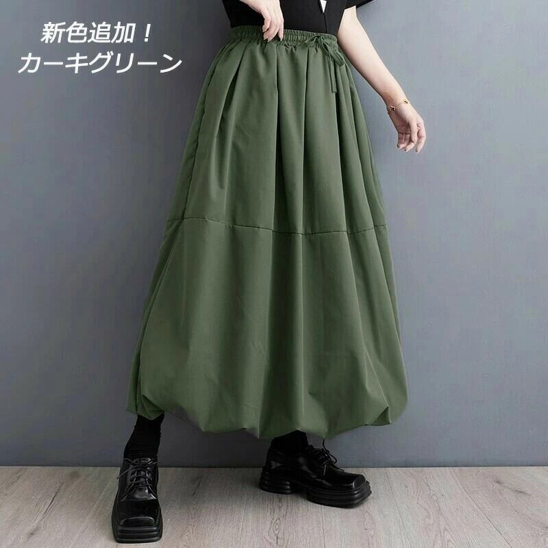【新色追加】バルーンスカート ロング スカート レディース ウエストゴム スカート ロング マキシ丈 バルーン フレアスカート 黒 フレア Aライン コクーンスカート 無地 aラインスカート ハイウエスト ロングスカート 大きいサイズ ボトムス