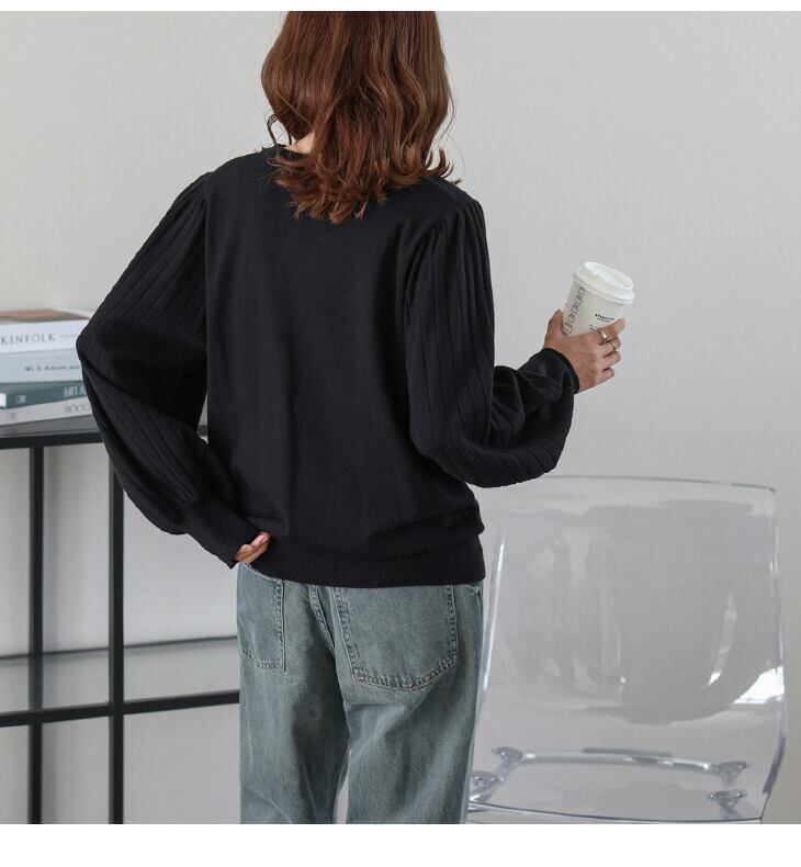 ニット レディース 大人可愛い トップス 長袖 クルーネック 全4色 薄手 柔らかい チクチクしない 肌触り ボリューム袖 ワイドリブ プリーツスリーブ ハイゲージ 暖か キレイめ 女性らしさ 韓国ファッション 25秋冬新作 フリーサイズ