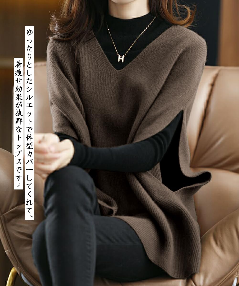 ニットベスト レディース トップス Vネック ドロップショルダー 重ね着 ゆる感 ゆったり 柔らかい 暖かい 無地 体型カバー オーバーサイズ プルオーバー カジュアル 秋冬 9色