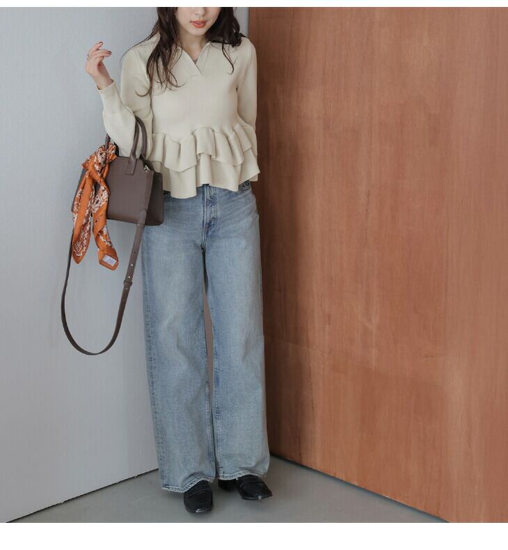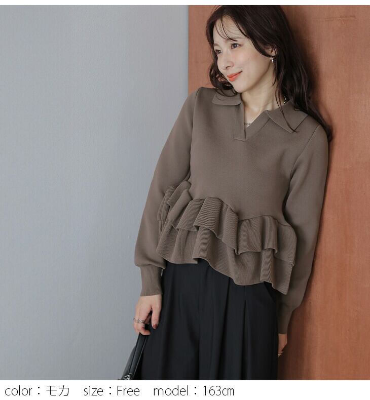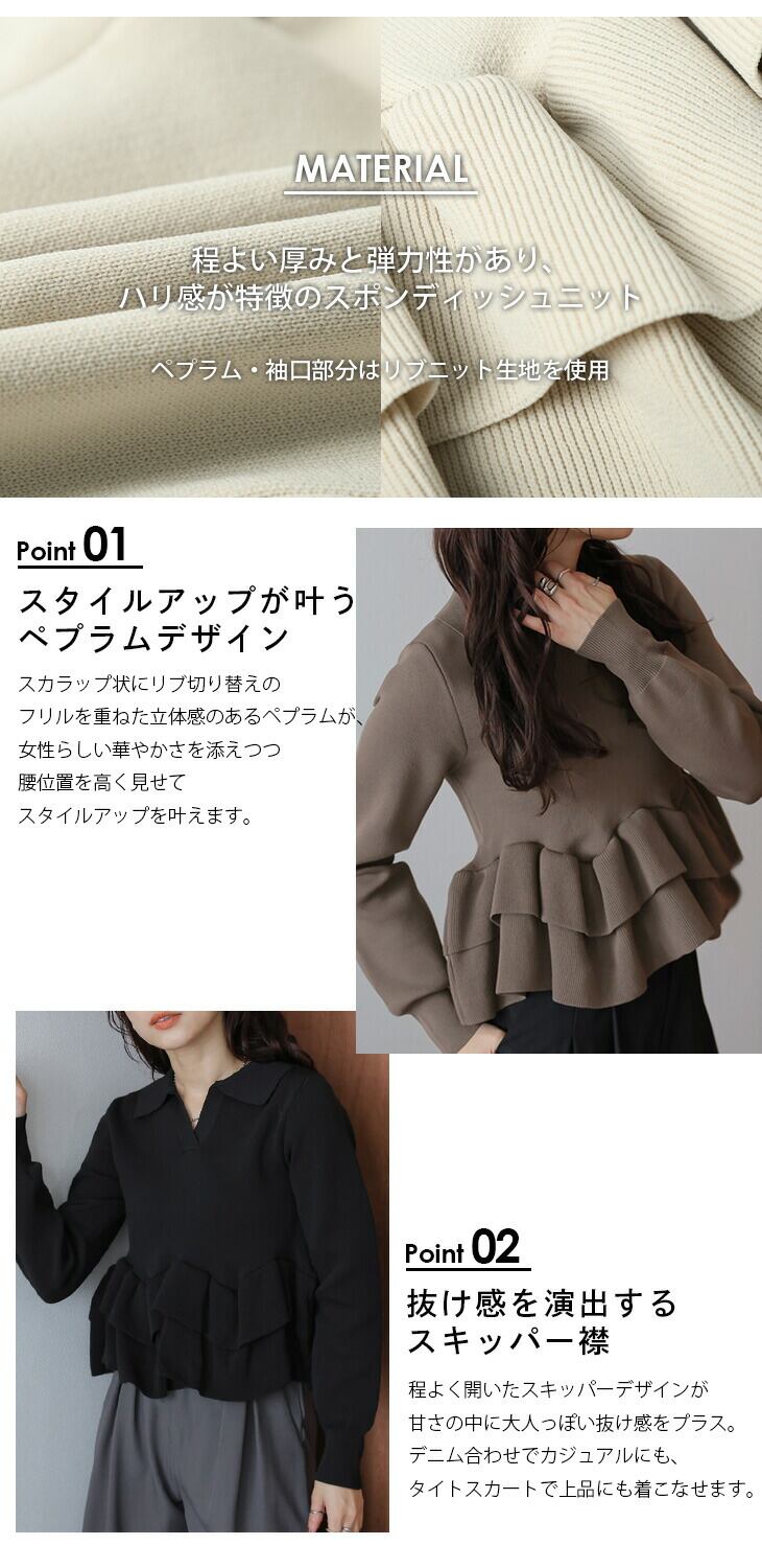 ダブルフリル ペプラム スキッパー ニット トップス 長袖 脚長効果 スタイルアップ 体型カバー レディース おすすめ おしゃれ 2025秋冬新作