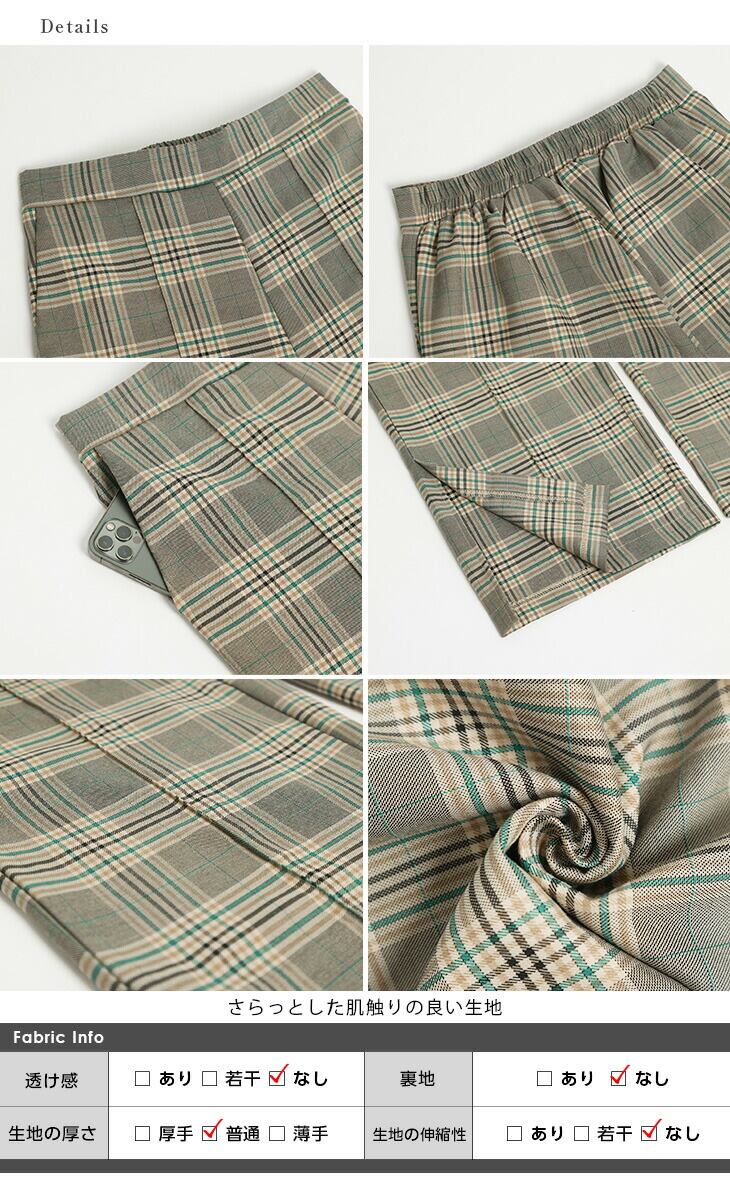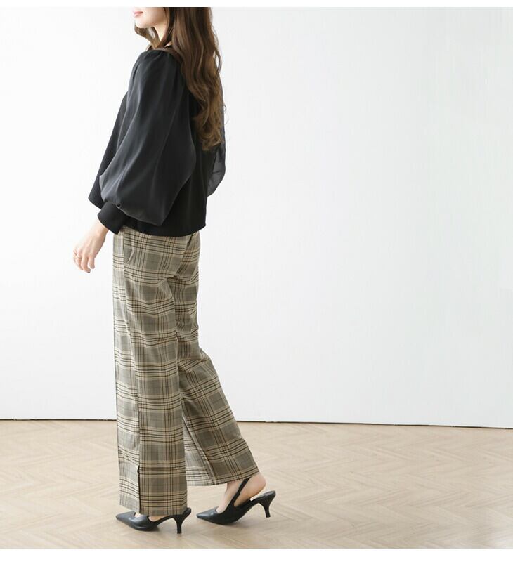 ボトムス パンツ ストレートワイドパンツ サイドスリット 美脚効果 抜け感 チェック柄 レディース おすすめ メール便 2025秋冬