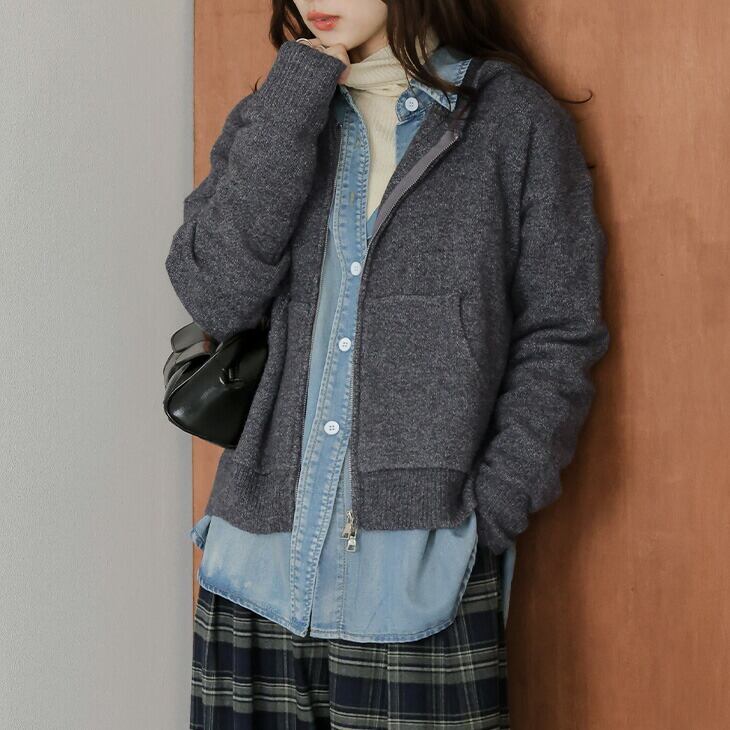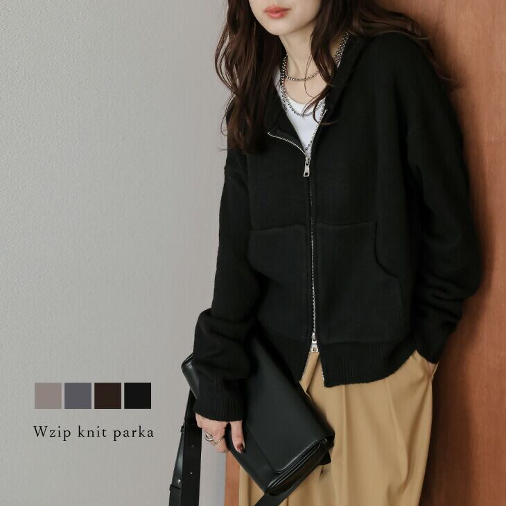 ニット ジップパーカー Wジップ ニットパーカー シンプル こなれ感 レイヤード 羽織り 着回し 長袖 トップス レディース おすすめ おしゃれ 2025秋冬新作