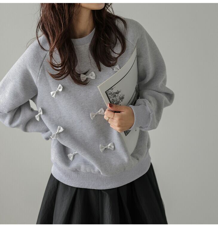 、スウェット プルオーバー リボン ガーリー 裏起毛 カジュアル レディース おすすめ おしゃれ フリーサイズ 2025秋冬