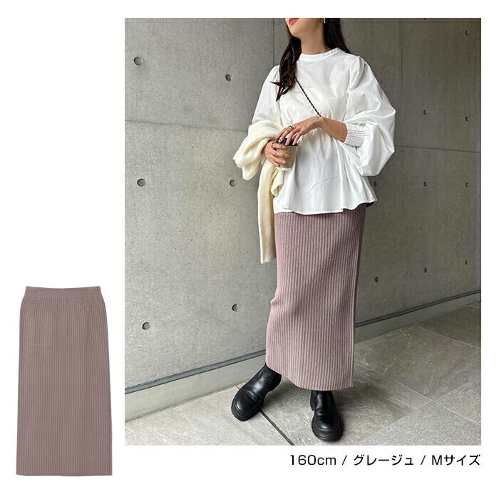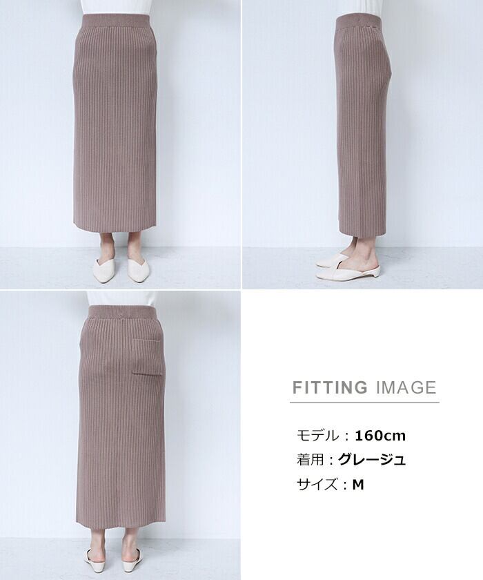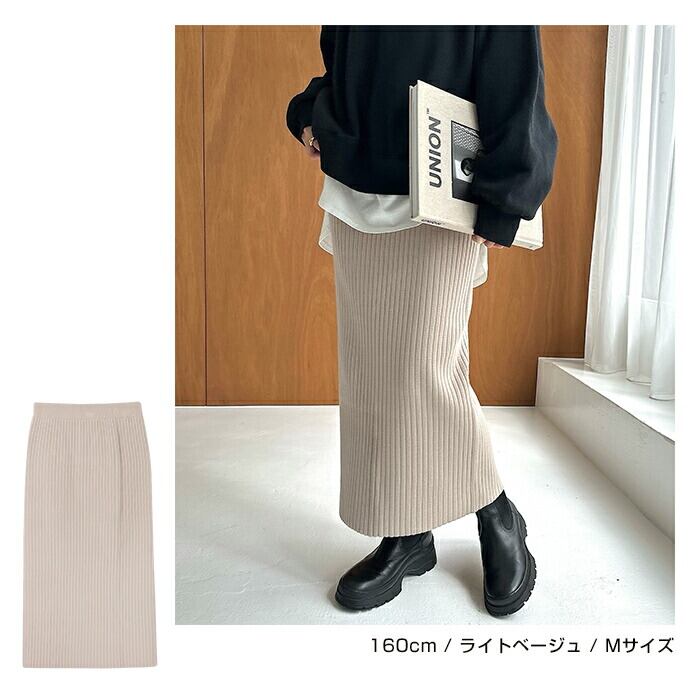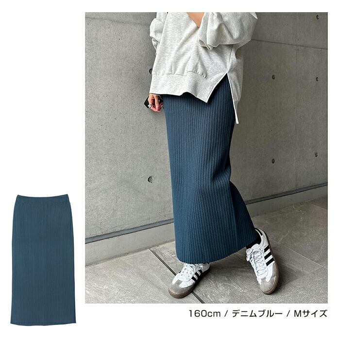 リブ ニット タイトスカート ロング タイト スカート レディース ナロースカート ニットスカート ボトム ウエストゴム 体型カバー 楽ちん ゆったり ストレッチ ポケット リブニット きれいめ オフィス カジュアル 冬服 秋服 あったか 暖か 防寒 M L 秋冬 春 秋 冬