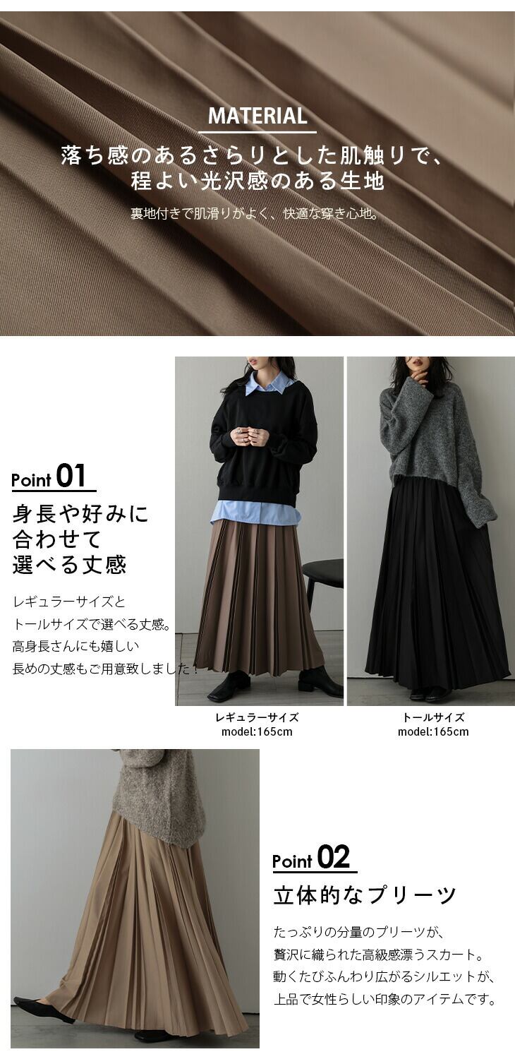 プリーツスカート 選べる丈感 キレイめ Aライン 美シルエット スカート ロング丈 ボトムス レディース おすすめ おしゃれ 2025秋冬新作