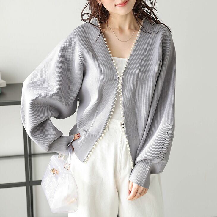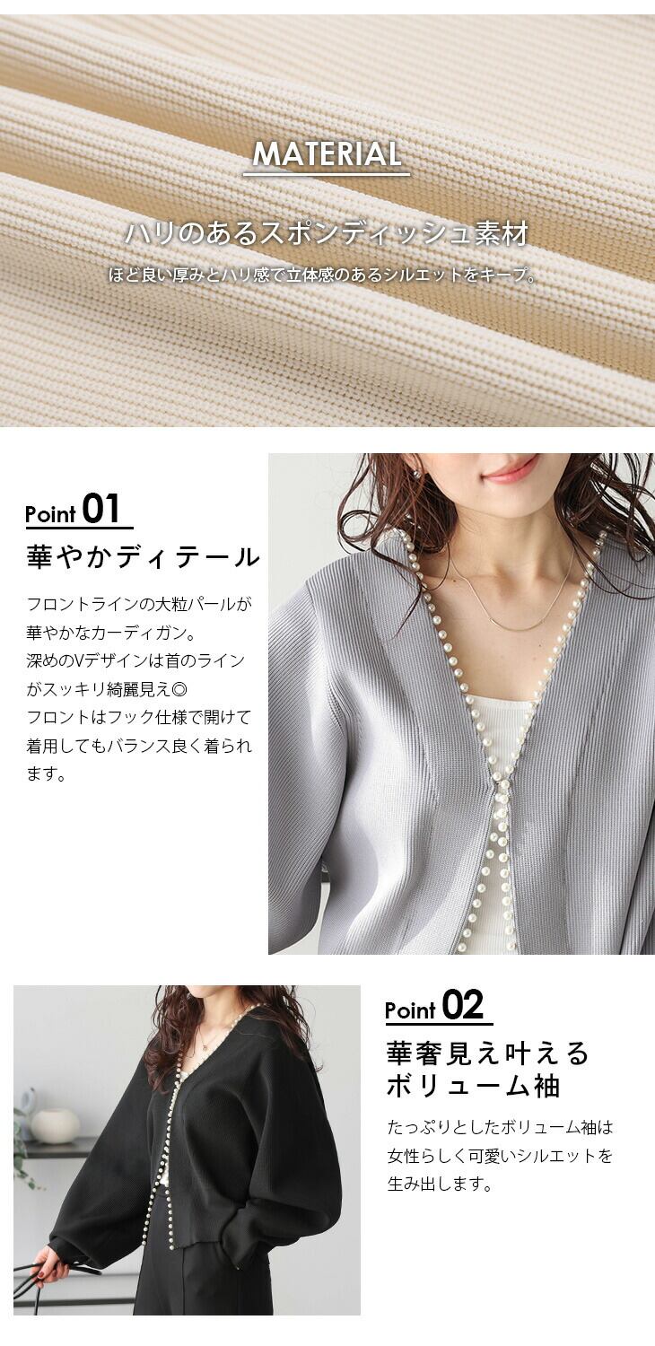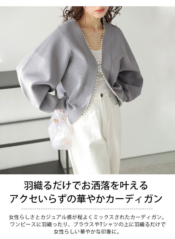 トップス カーディガン パール ライン フェミニン ボリューム袖 レディース おすすめ おしゃれ フリーサイズ 2025秋冬新作