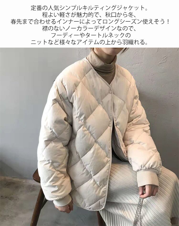 中綿ダウン キルティングコート レディース トップス 冬 中綿コート キルティングジャケット アウター ノーカラー カジュアル あったか 中綿ジャケット キルトジャケット 大きいサイズ 暖かい 冬物 ぽかぽか 軽量 防寒 低身長 高身長