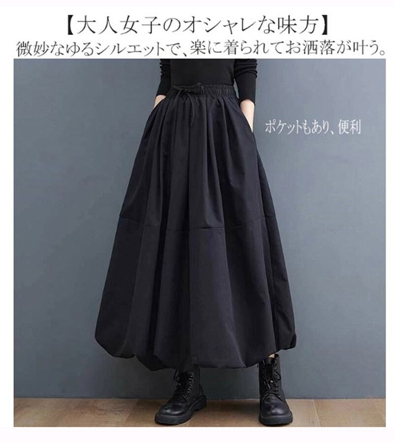 バルーンスカート レディース 春 切り替え ロングスカート マキシ丈 スカート Aラインスカート ドッキング フレアスカート ボトムス 無地 Aライン フレア ウエストゴム ポケット 春夏 秋冬 着痩せ 大人 通勤 裏地あり