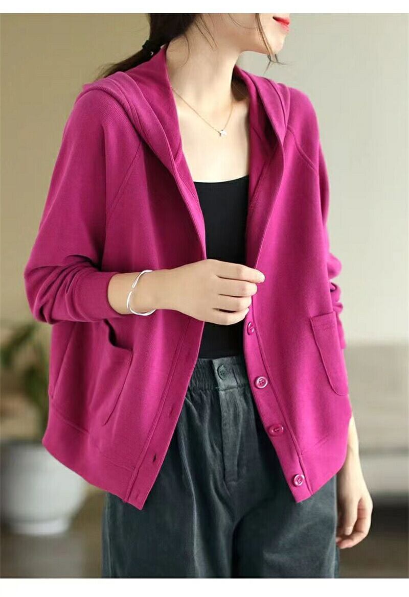 パーカー カーディガン レディース フード付き ニット アウター ライトアウター 無地 長袖 トップス vネック コート ショート丈 スプリングコート ゆったり 秋 春物 羽織り コーディガン ポケット付き 織物 綿 上着 ショートコート ジャケット シンプル 冷房対応