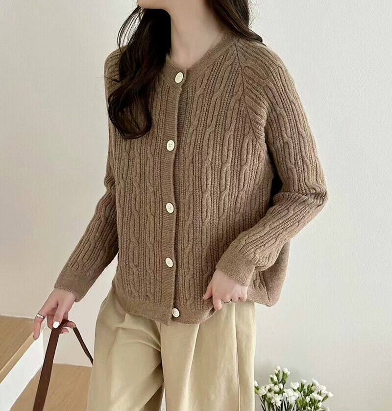 ケーブル編み ニットカーディガン ニットソー レディース 秋冬 ケーブルニット トップス 羽織り ニット カーディガン 厚手 防寒 ニットウェア アウター ショート丈 ラウンドネック ニットセーター 織物 長袖 無地 お出かけ 柔らかい 重ね着 カジュアル おしゃれ 秋 冬