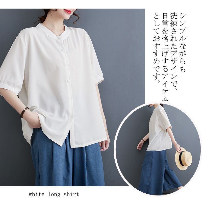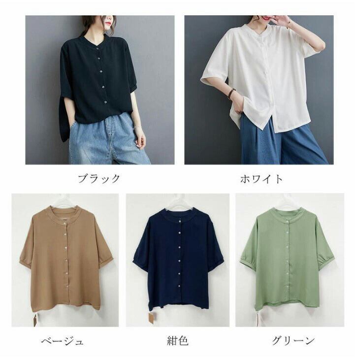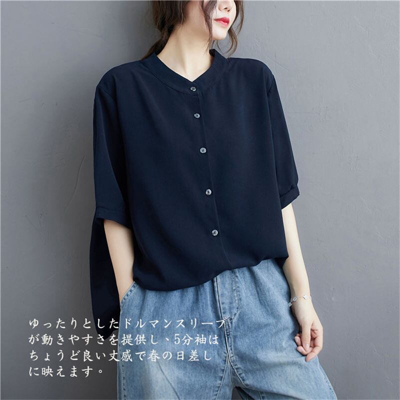 チュニック シャツ ブラウス 5分袖 ロングシャツ 半袖シャツ トップス 白シャツ 春 レディース 夏 ホワイトシャツ 無地 ラウンドネック 体型カバー ゆったり 大きいサイズ 黒シャツ 七分袖 グリーン ベージュ 薄手 涼しい メール便 送料無料
