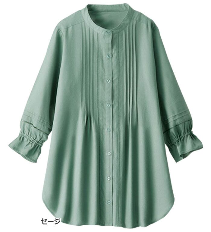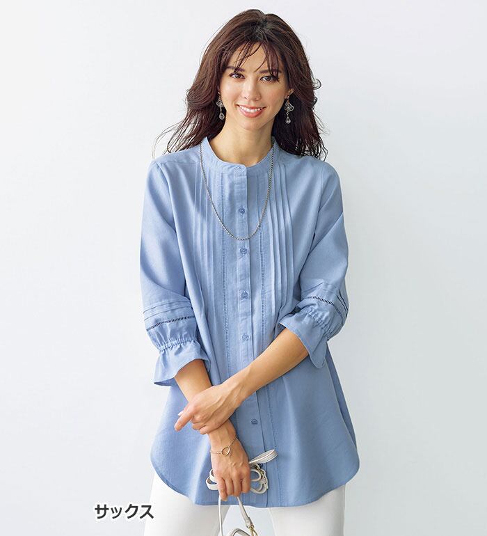 嬉しい機能付!リネン混シャツチュニック。リネン素材でずっとサラサラ。