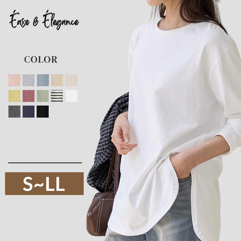 ラウンドヘムオーバーサイズTシャツ チュニック レディース 25春夏 全7色 長袖/半袖 S/M/L/LL