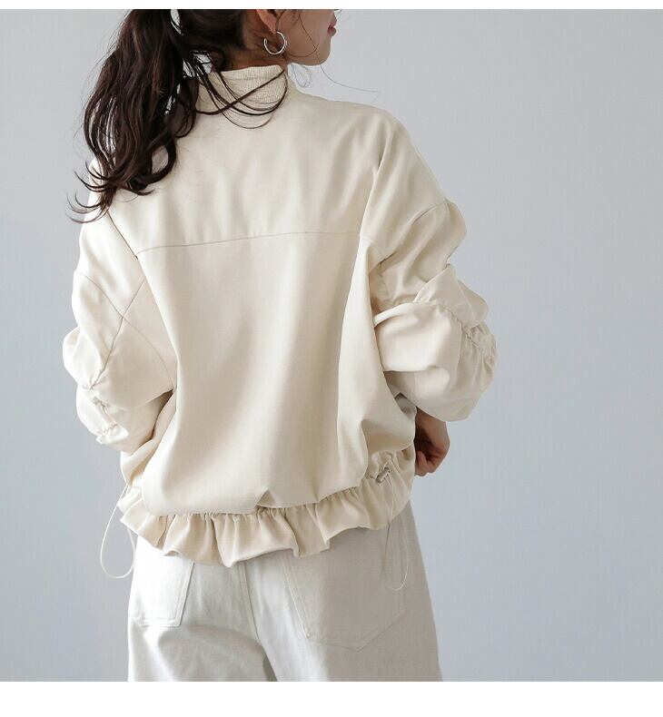 ブルゾン ドロスト フリル ギャザー ボリュームスリーブ 体型カバー フェミニン アウター レディース 秋冬