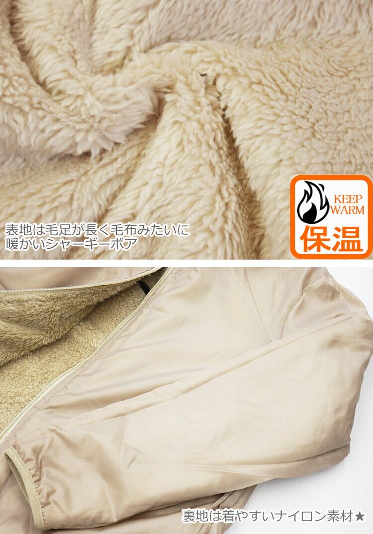・前開きファスナーで開閉も楽々なボアブルゾン。着るだけで癒される可愛いふわふわフリースお部屋の防寒着として冷え対策にもおすすめ。