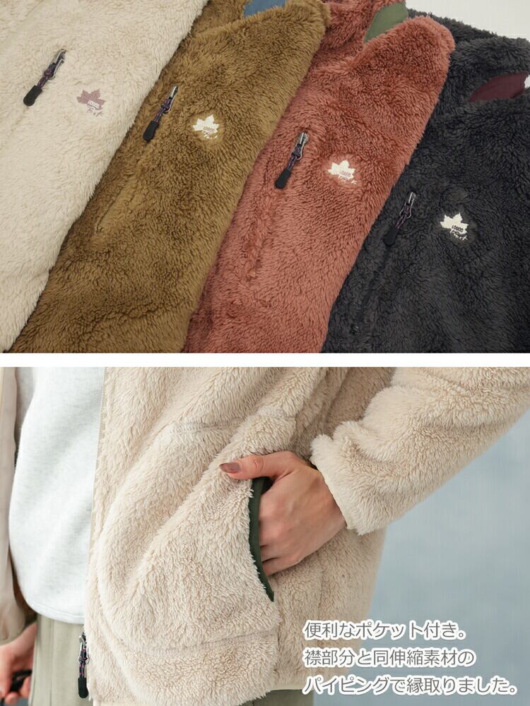 ロゴス パーク ボア フリース ジャケット レディース 秋 冬 ブランド ジップアップ ボアフリース アウター カーディガン スタンドカラー 裏地付き 無地 軽量 厚手 ルームウェア アウトドアウェア 山ガール ファッション ベージュ カーキ チャコール M L LL 大きいサイズ、