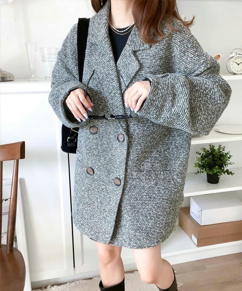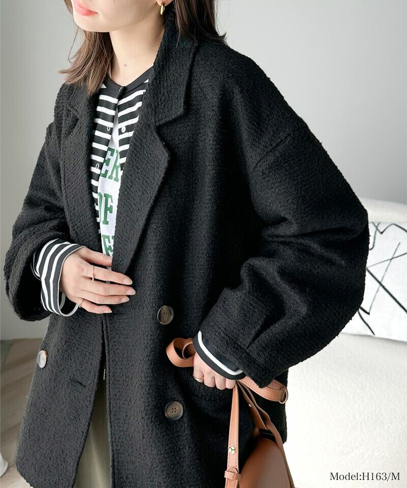 軽やかで柔らかい素材感は、着ることの喜びを感じさせてくれます。ダブルボタンと長袖デザインで、さまざまなシーンで活躍すること間違いなし。秋冬の重ね着にも最適です。