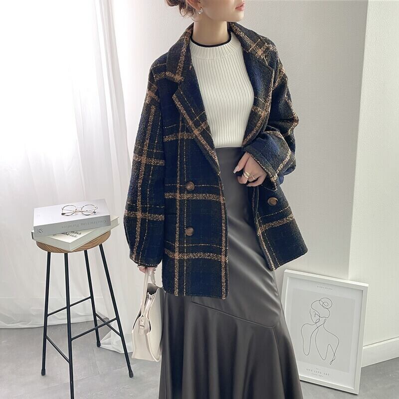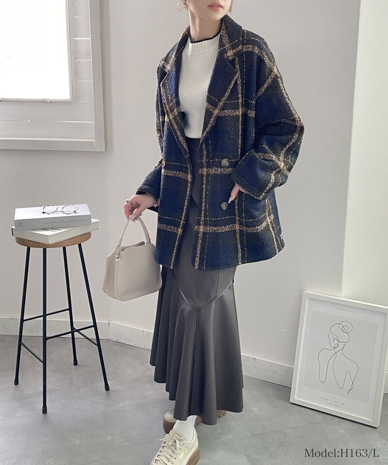 アウター ジャケット レディース コート ミドル丈 チェック ブルゾン 羽織り 起毛 裏地付き ダブルボタン 長袖 大きいサイズ 秋 冬