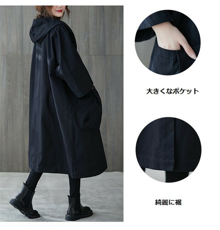 トレンチコート レディース 春 スプリングコート ロング フード付き おしゃれ コート 大きいサイズ 高級 シンプル 大人 アウター Aライン ミドル丈コート 秋 テロンチコートトレンチ 通勤フォーマル 秋