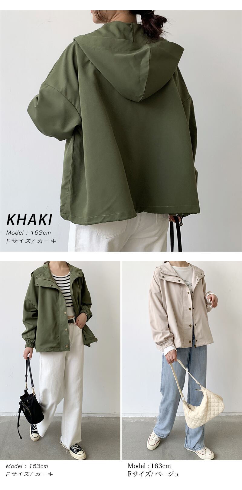 カラーカーキ、ベージュ、ネイビー、ブラック
