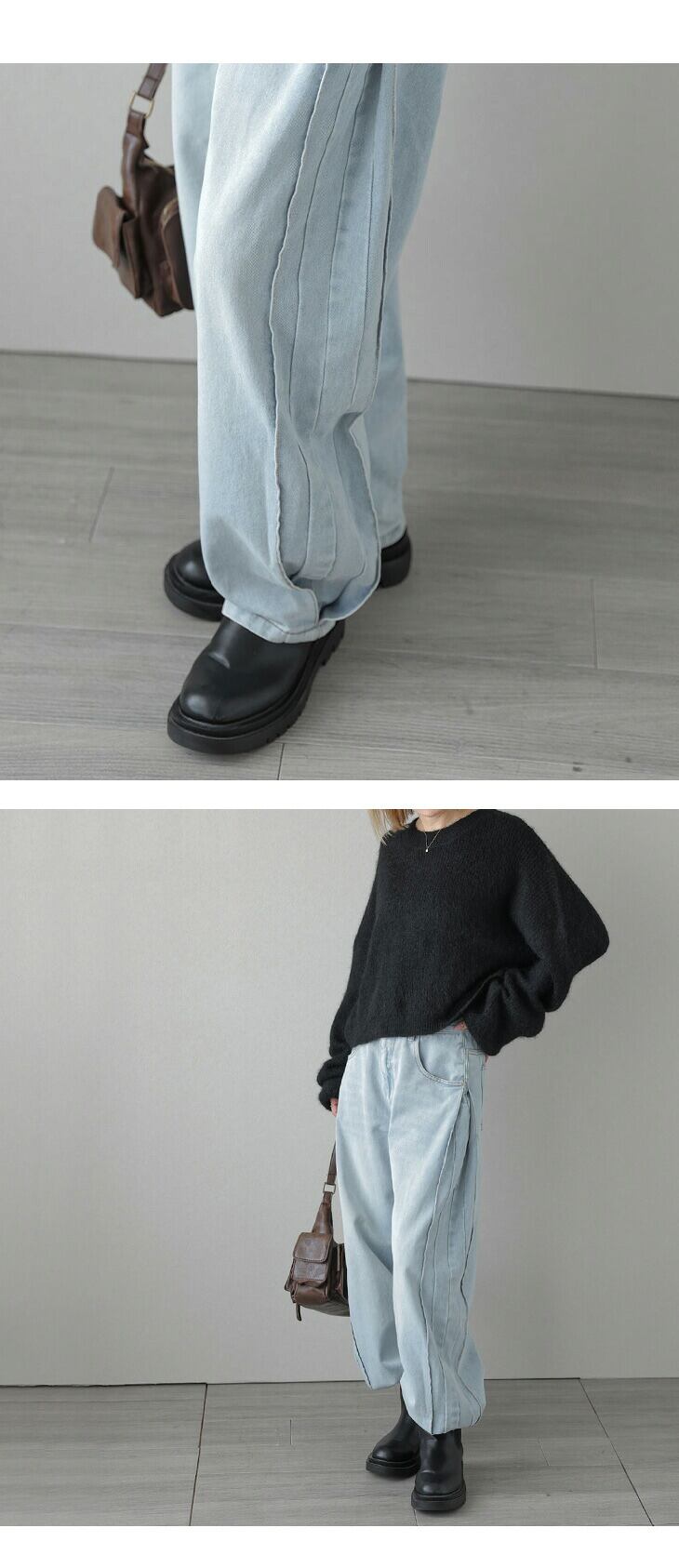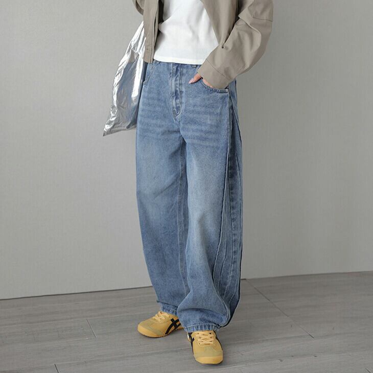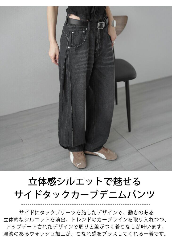 サイドタック プリーツ カーブデニムパンツ ウォッシュ加工 シーズンレス ボトムス レディース おすすめ おしゃれ 2025秋冬新作