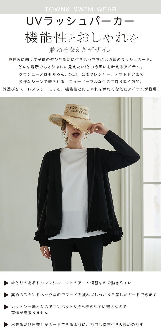 フリル ラッシュガード 水陸両用 ラッシュガード アウター 速乾 99%UVカット 指穴付き ブルゾン レディース 日焼け対策 紫外線対策 ゆったり 体型カバー フード付き 海 フリルラッシュガード ラッシュガード フリル<br>