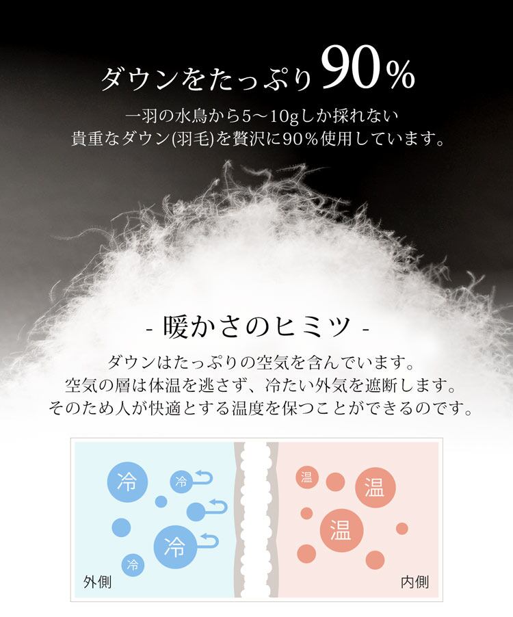 中綿:ダウン90%、フェザー10%