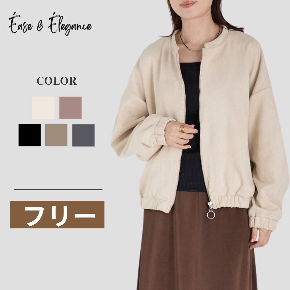 【ブルゾン レディース 秋 40代 30代 アウター ジャケット カジュアル 体型カバー スエード ゆったり プチプラ オシャレ フロントジップ ジャケット】