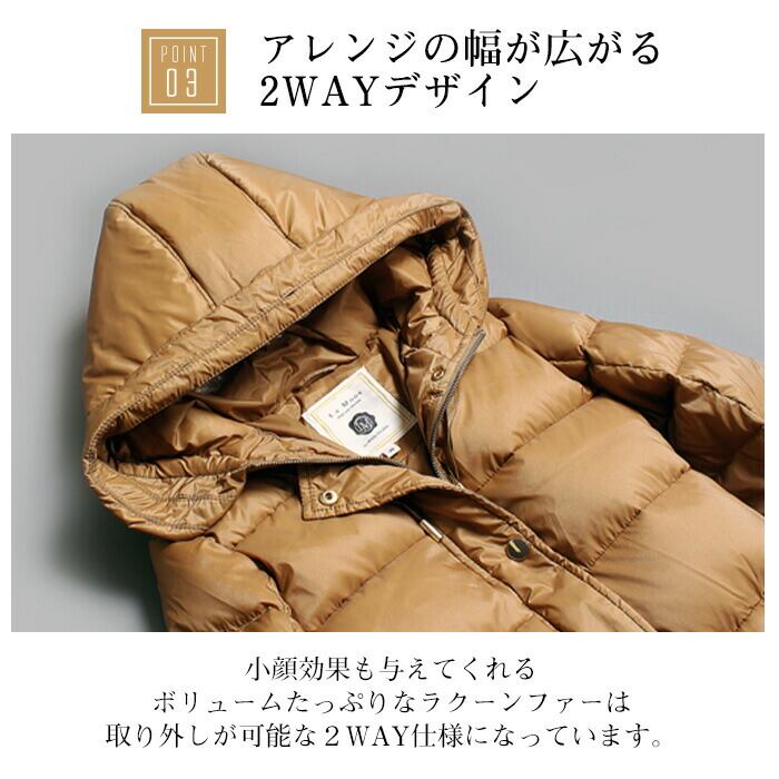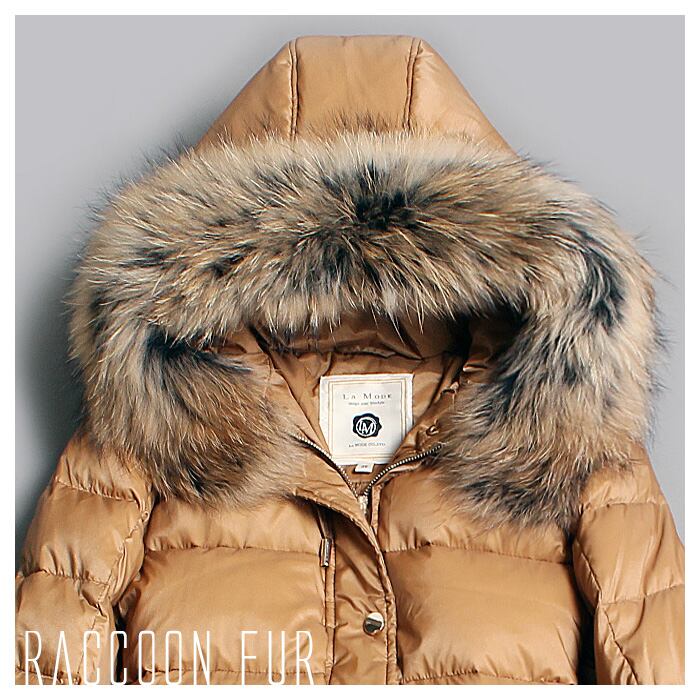 贅沢ラクーンファーミドルダウンコート
