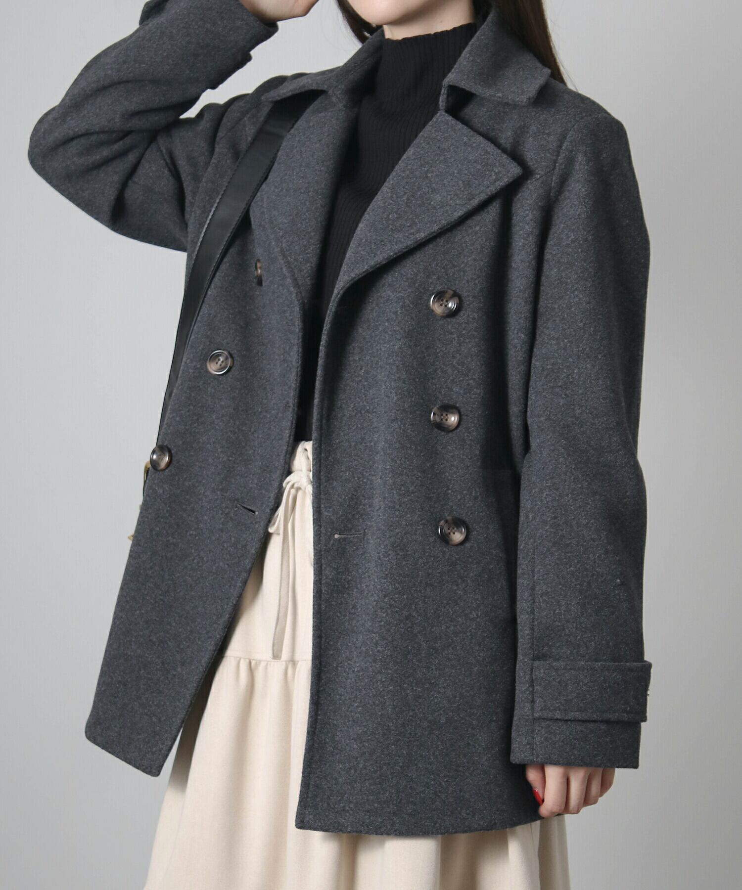 トレンチ風ピーコート コート レディース 秋冬 ショート丈 アウター 大きいサイズ Pコート トレンチコート ピーコート ジャケット ダブル 無地 通勤 通学 ビジネス 定番 きれいめ 上品 防寒 厚手