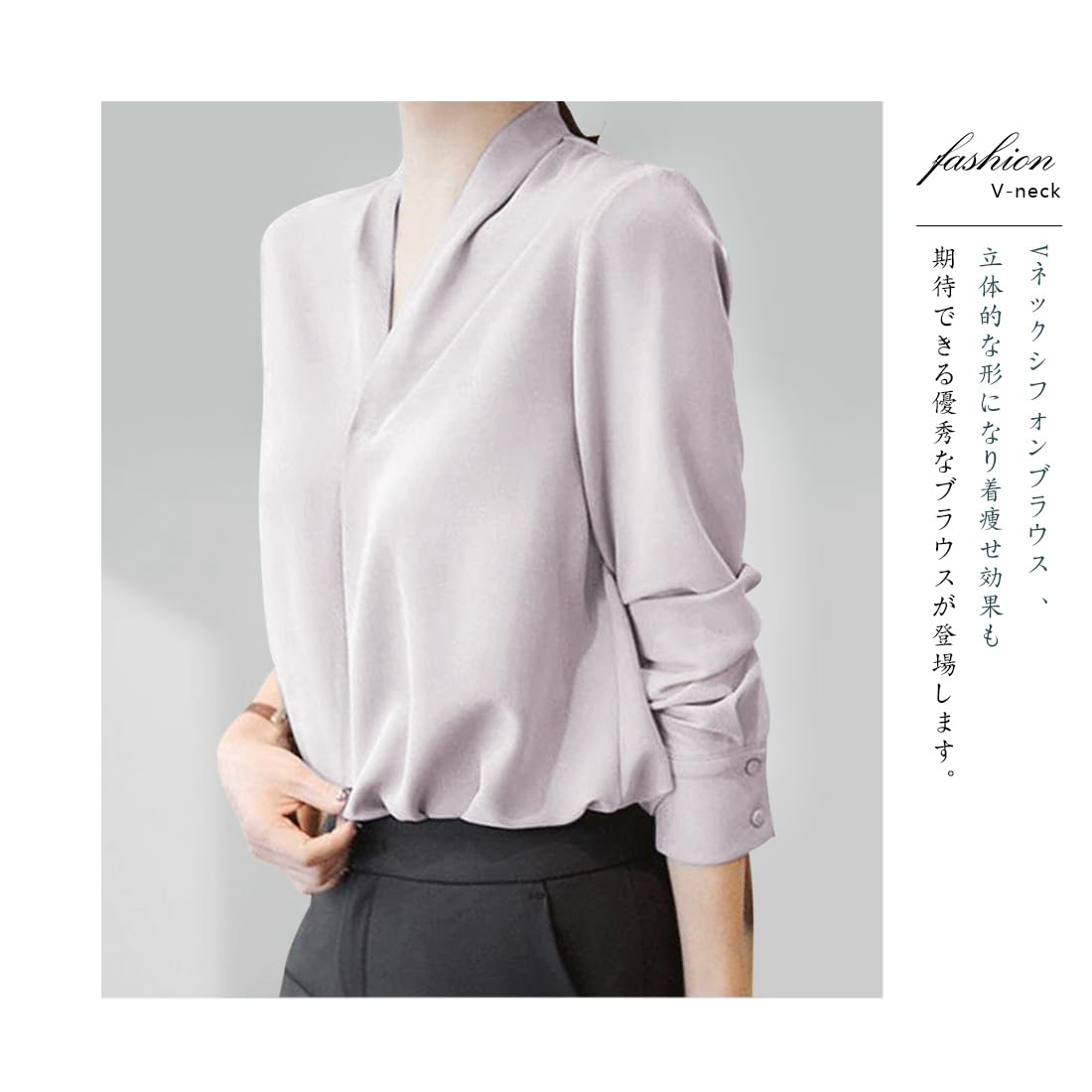 女性らしい魅力を引き立てるVネック長袖ブラウスで、フォーマルからカジュアルまで幅広く対応可能なアイテムです!このブラウスで、いつでも自信を持ってお出かけしましょう!