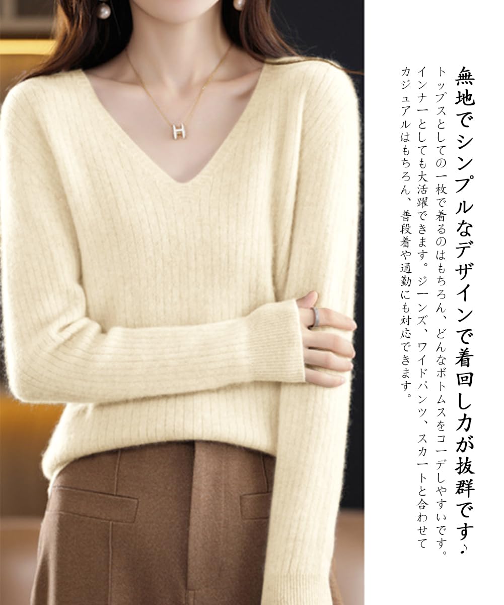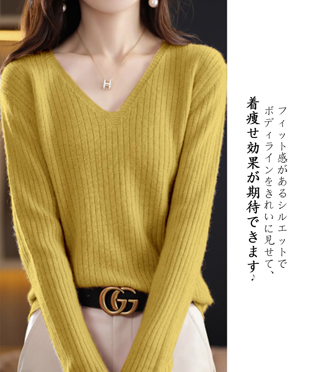 リブニット セーター 14色 レディース トップス Vネック カットソー 長袖 伸縮性 プルオーバー ストレッチ 着痩せ 柔らか 着回し力 シンプル おしゃれ カジュアル 通勤