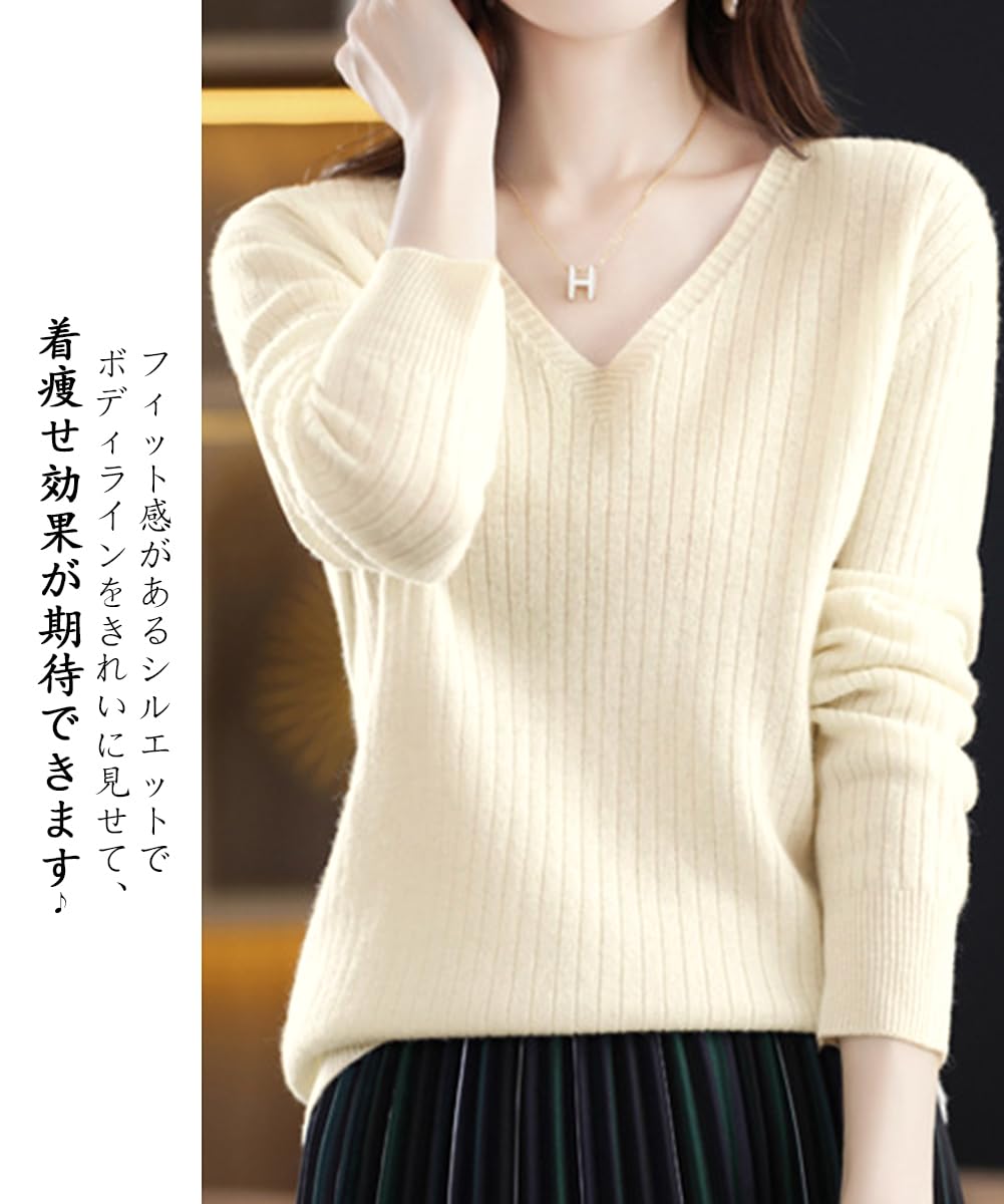 リブニットセーター レディース トップス Vネック カットソー 通勤 おしゃれ 着痩せ シンプル カジュアル 着回し力 長袖 プルオーバー ストレッチ