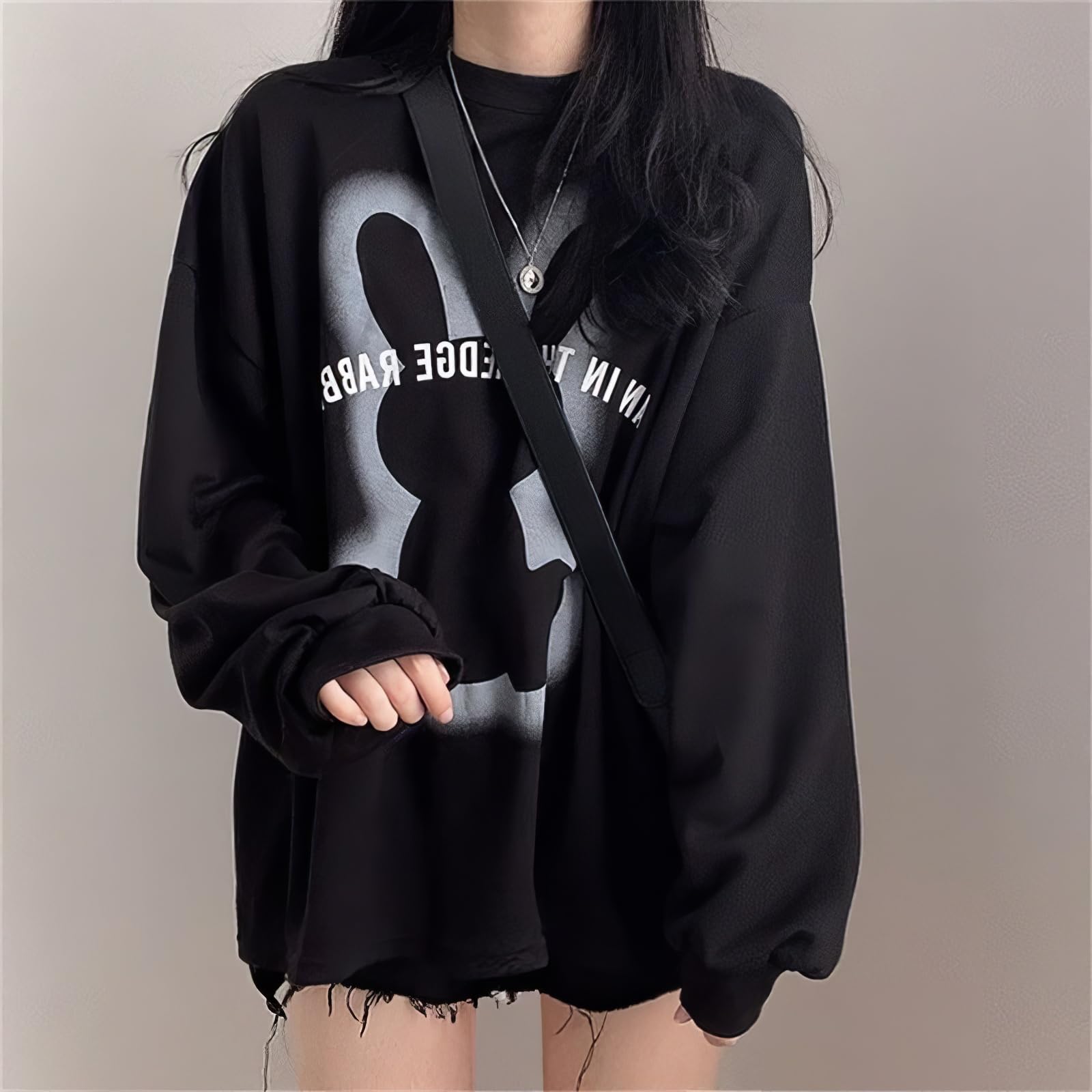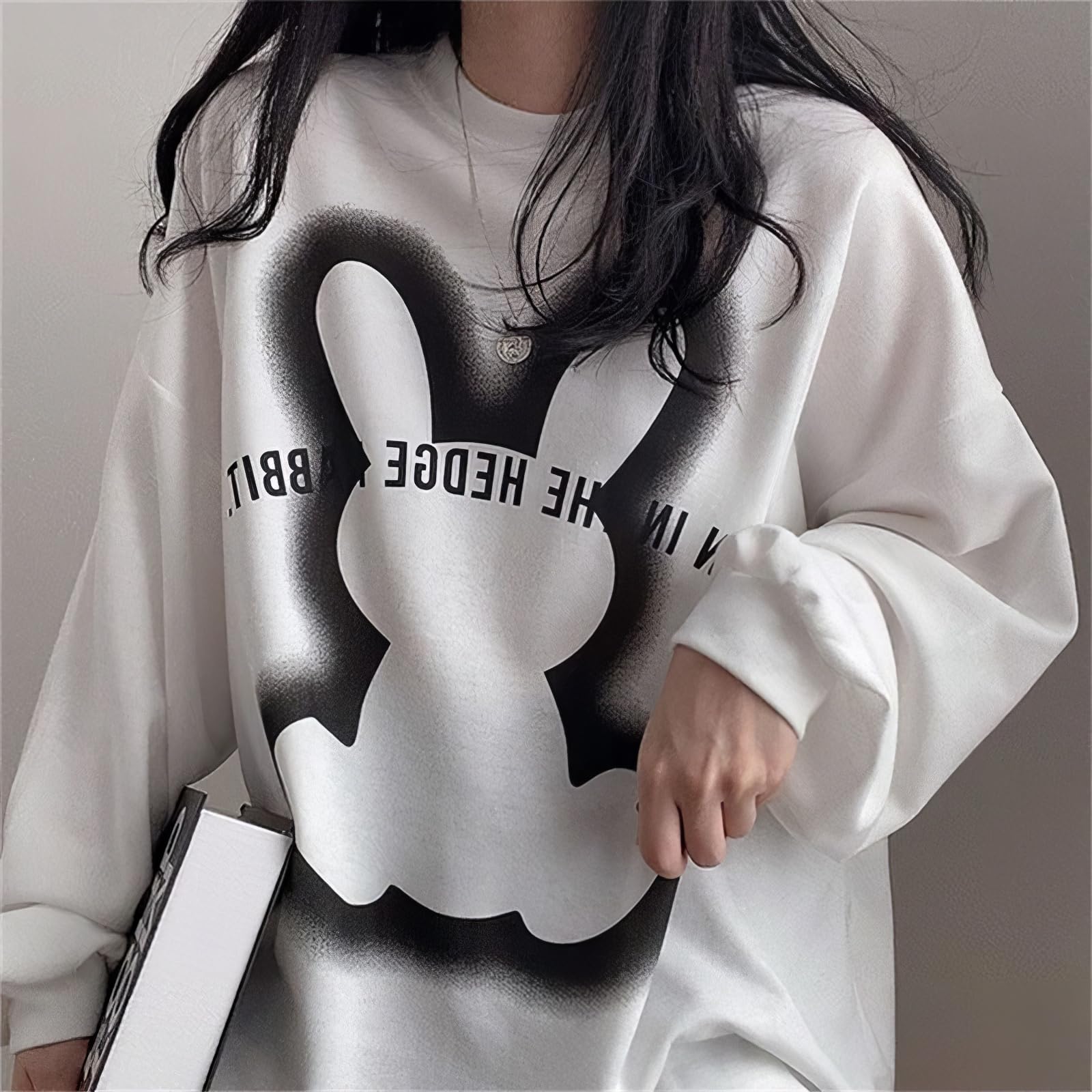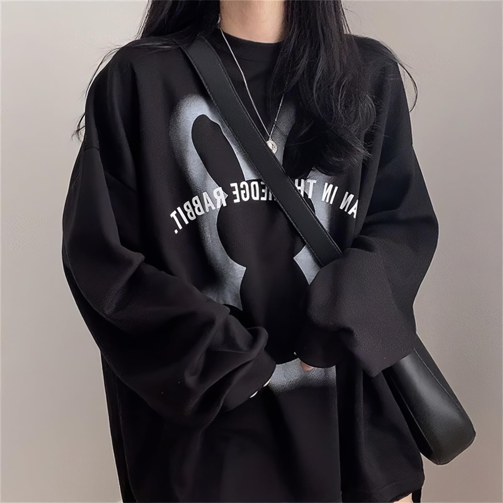 トレーナー レディース 長袖tシャツ スウェット 長袖 トップス 薄手 裏起毛 プルオーバー 秋 冬 春 大きいサイズ ロング 英字 ロゴ ウサギ プリント パーカー ゆったり おしゃれ オーバーサイズ 丸襟 ドロップショルダー 可愛い