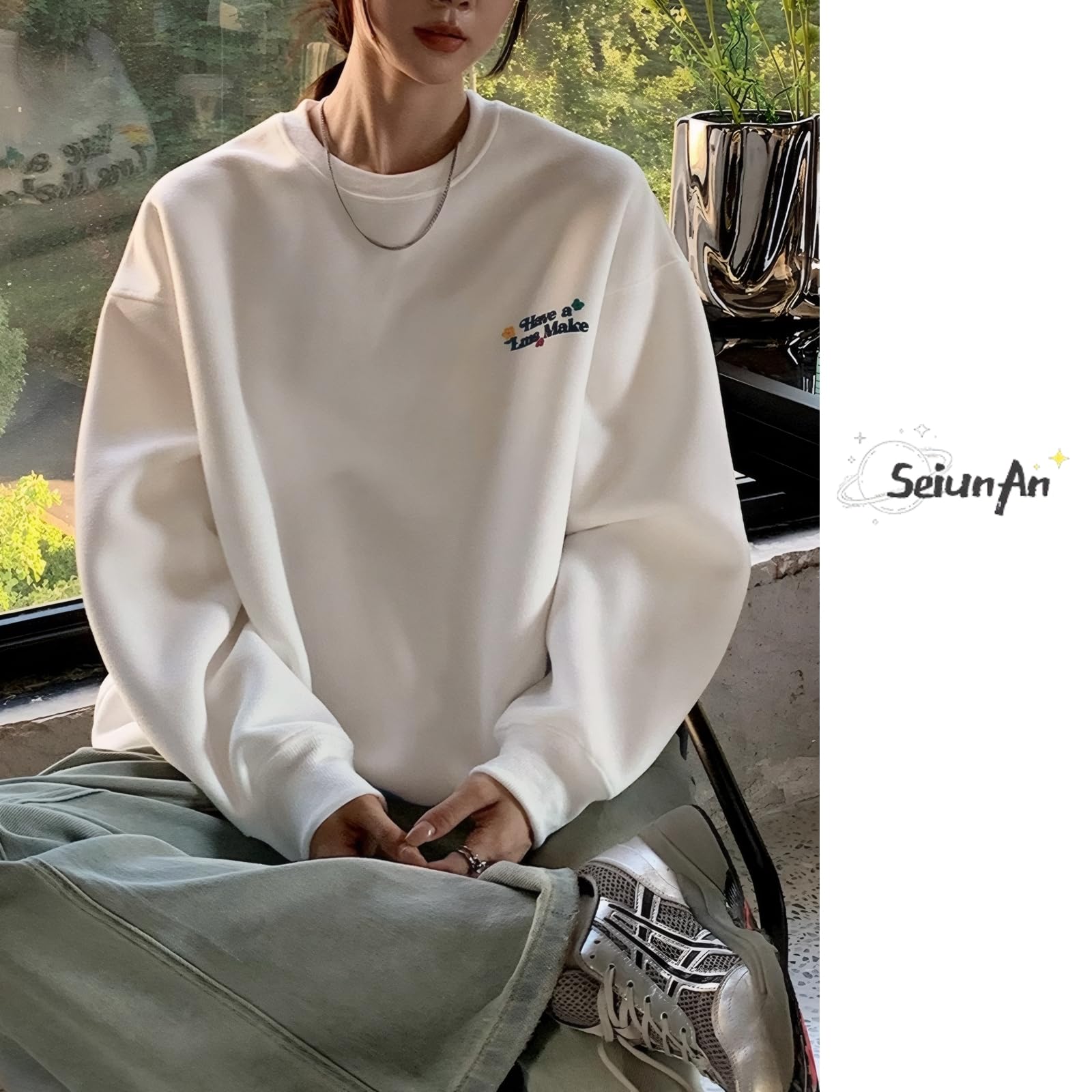 秋冬に欠かせないトレーナー:今トレンドのビッグシルエットのトレーナーが登場します。胸元ト背中にシンプルでスタイリッシュな英字と可愛い花柄のロゴプリントが施されており、洗練された印象を与えます。鮮やかすぎない地味もない色味で、デイリーにもオフィスにも一枚でコーデが広がります