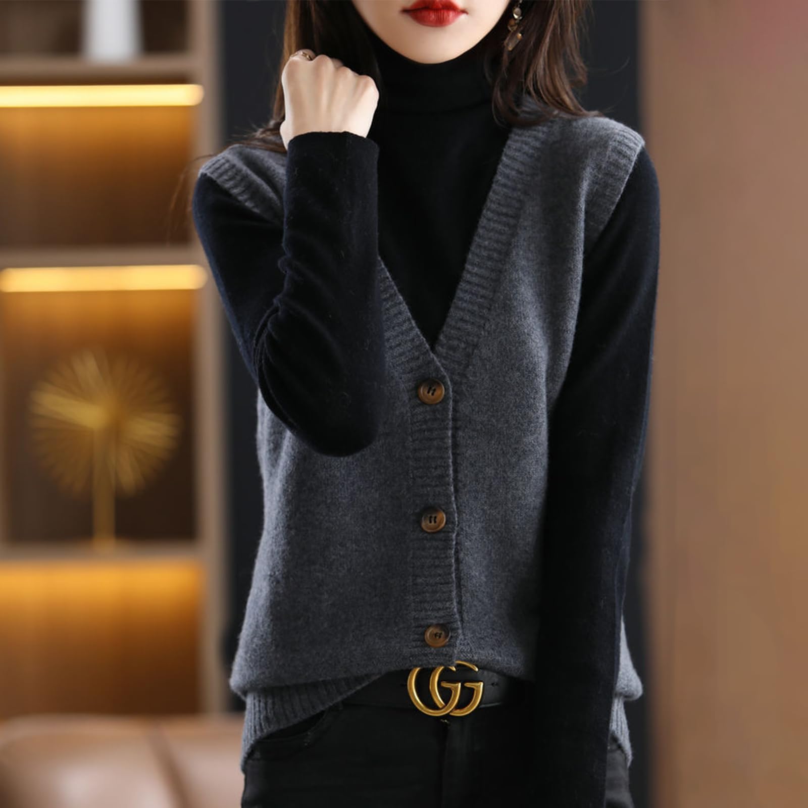 上品なVネックベスト:シンプルで飽きない無地ベストで洗練された大人らしい印象を作り出し、デイリーにもオフィスにも一枚でコーデが広がります。春から秋までは薄手アウターとして、真冬に防寒セーターに、一枚持ってロングシーズンで重ね着風コーデを楽しめます