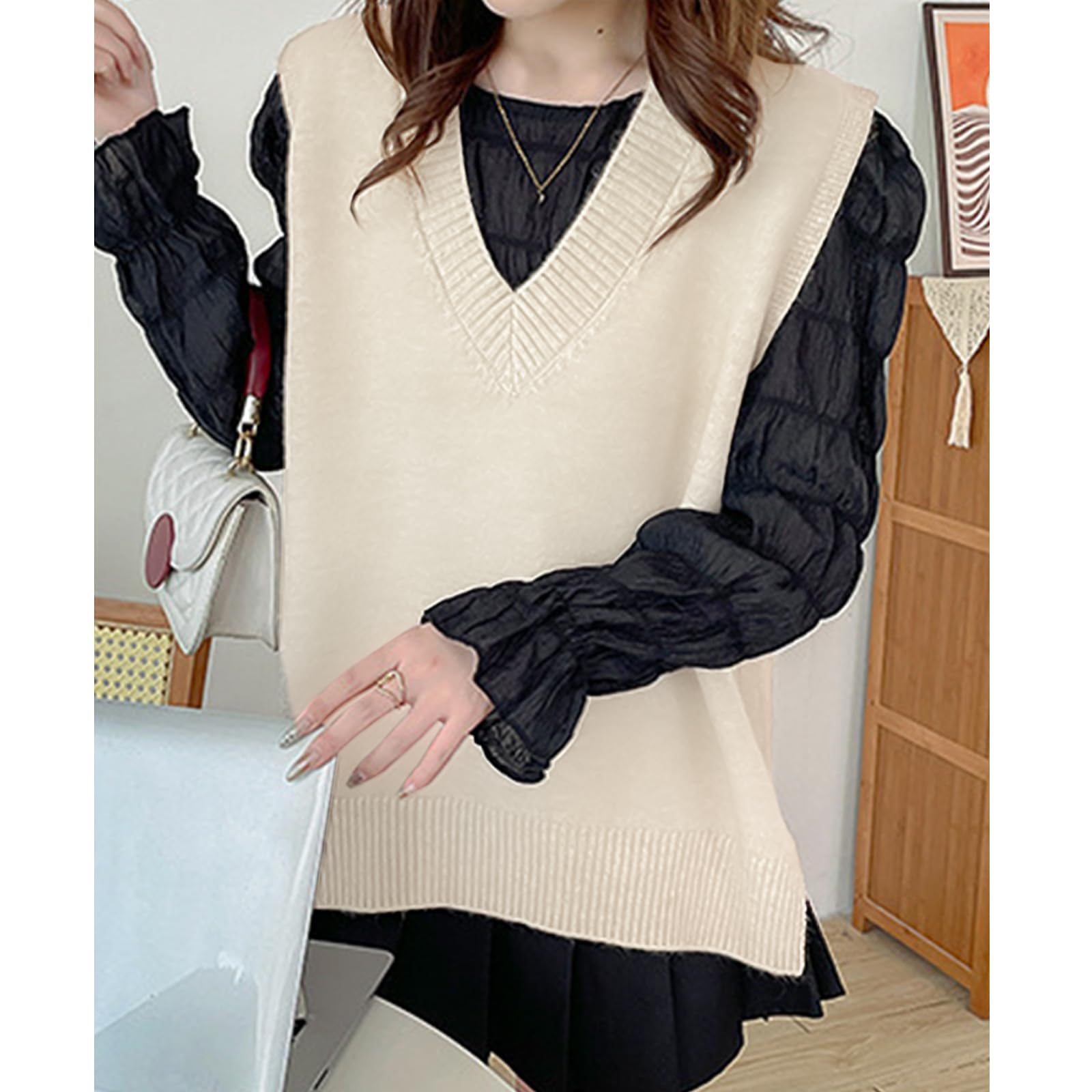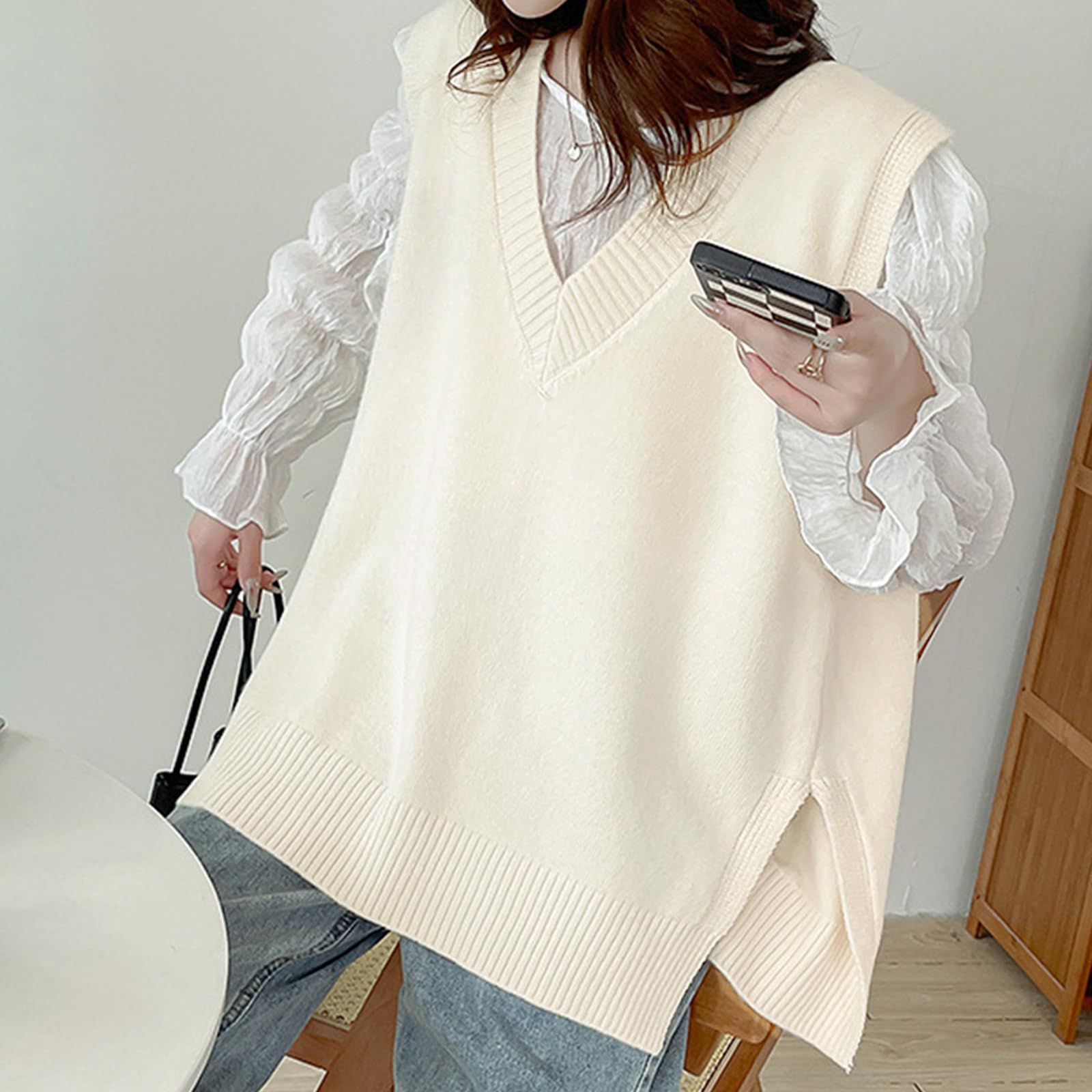 ニットベスト レディース セーター ロングベスト 秋冬春 Vネック トップス ノースリーブ ジレ 大きいサイズ 薄手 無地 重ね着 おしゃれ ゆったり スリット入り オフィス 韓国 秋服 カジュアル 部屋着 温かい