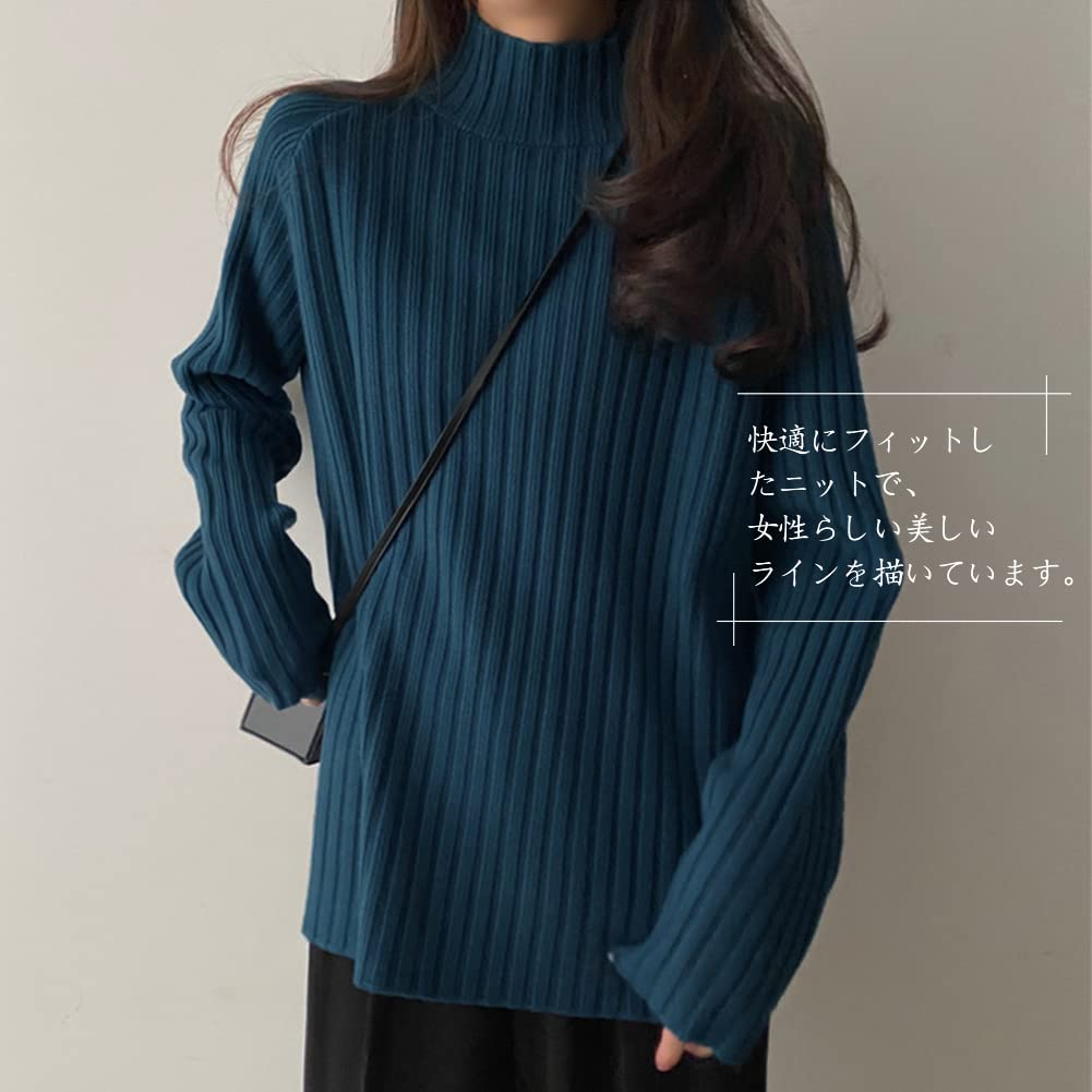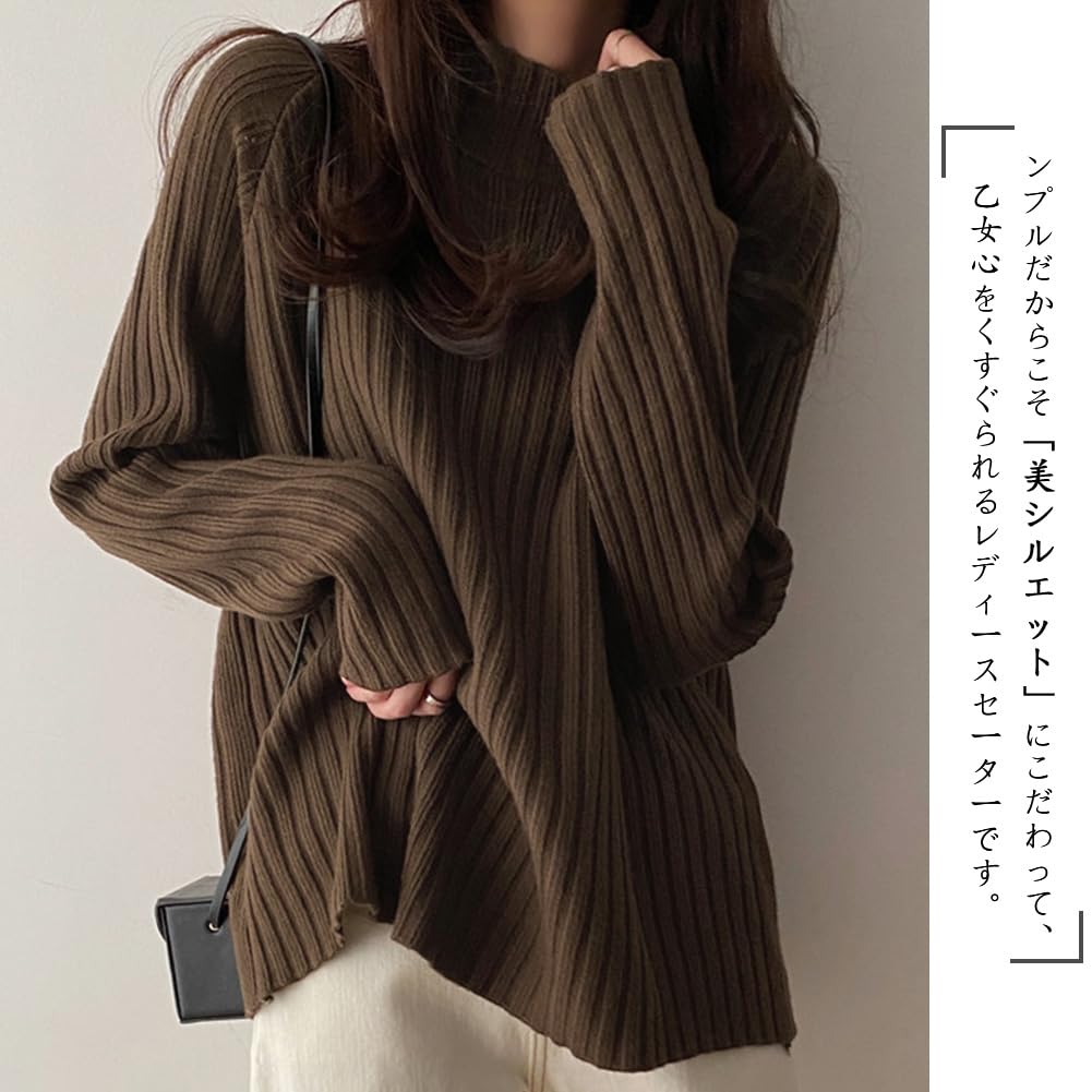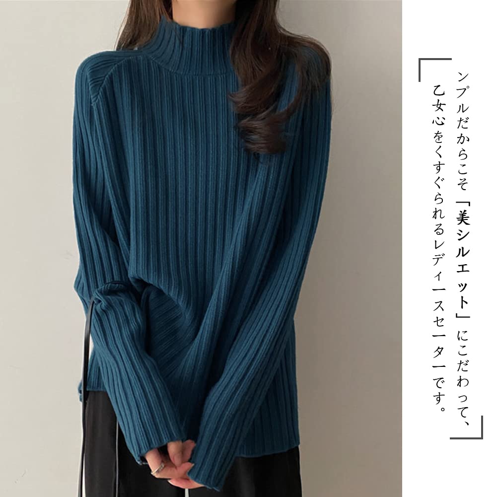 セーター レディース ニット ハイネック リブ タートルネック シンプル 長袖 着痩せ 柔らかい ゆったり トップス おしゃれ 可愛い カジュアル 暖かい 通勤 お出掛け 秋 冬