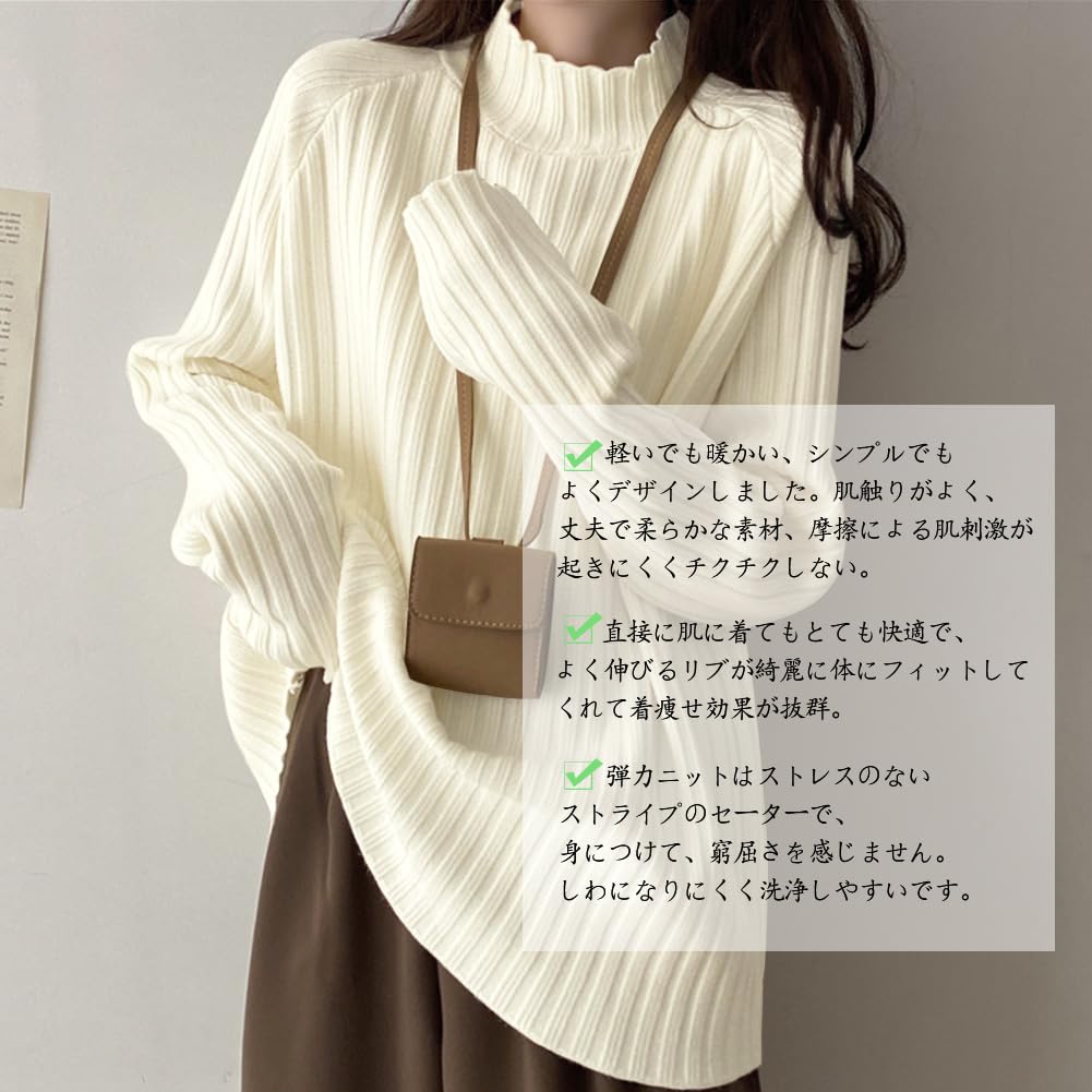 ★軽いでも暖かい、シンプルでもよくデザインしました。肌触りがよく、丈夫で柔らかな素材、摩擦による肌刺激が起きにくくチクチクしない。直接に肌に着てもとても快適で、よく伸びるリブが綺麗に体にフィットしてくれて着痩せ効果が抜群。服の生地は軽くてストレッチで、着脱しやすいです。弾力ニットはストレスのないストライプのセーターで、身につけて、窮屈さを感じません。しわになりにくく洗浄しやすいです。