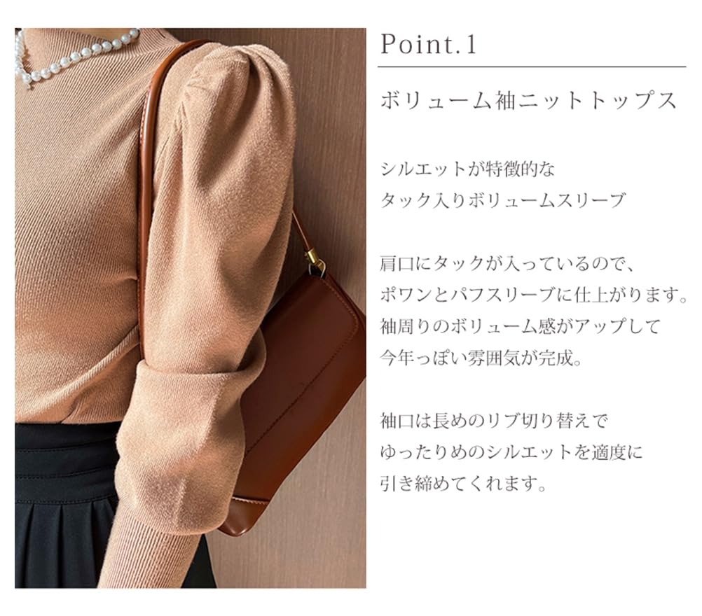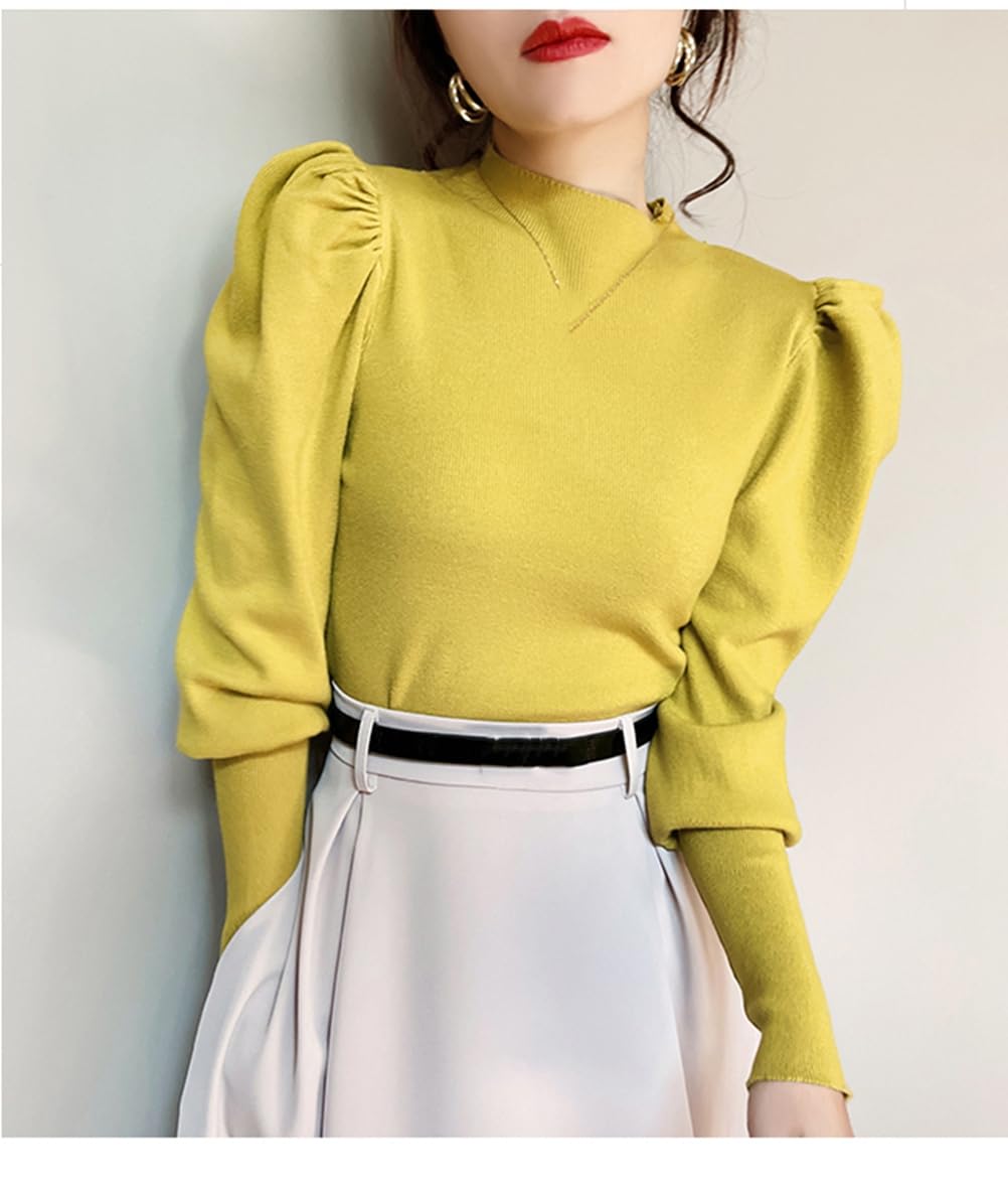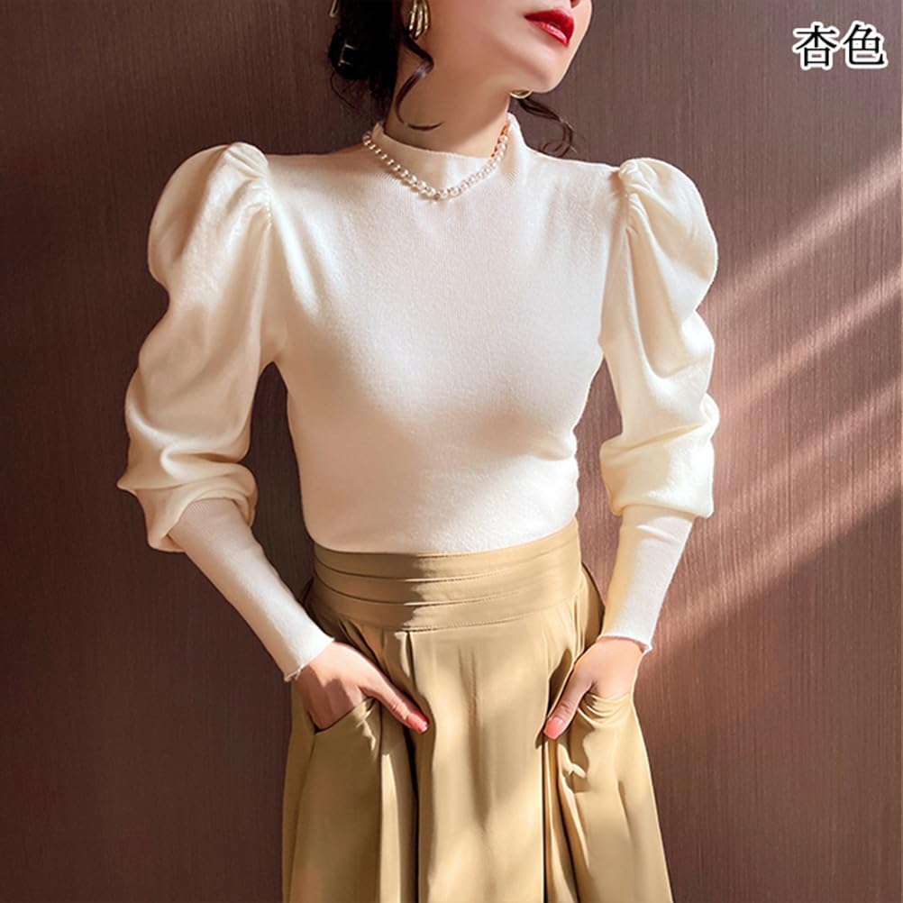 ニット レディース モックネック ボリューム袖 ハイネック リブニット 長袖パワーショルダー トップス プチハイネック パワショル パフスリーブ バルーン袖 無地 ニットセーターきれいめ リブ 女性用 エレガント シンプル