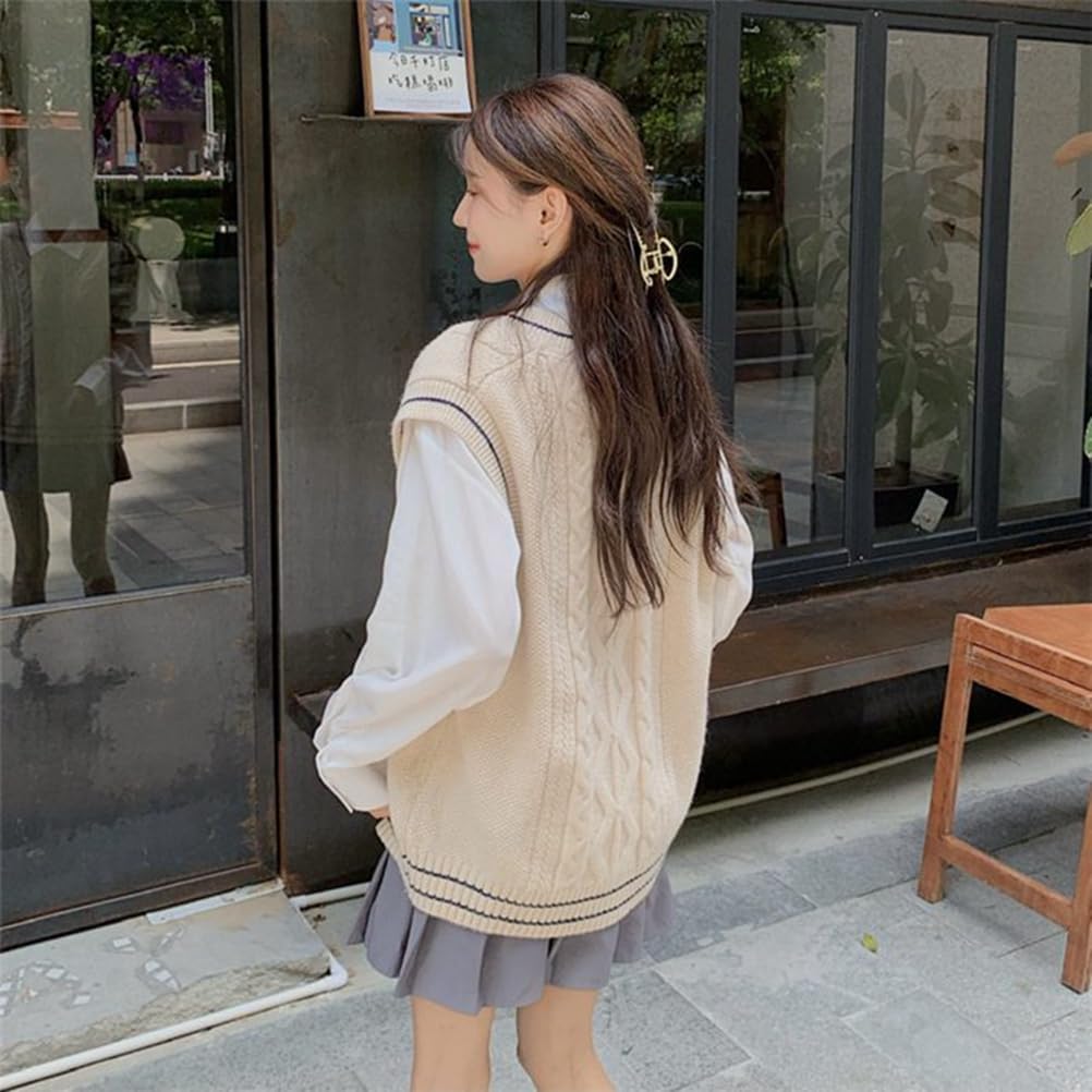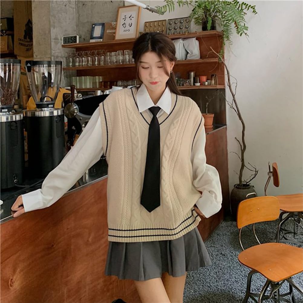 ニットベスト レディース Vネック ネクタイ 白シャツ スクールベスト ライン入り 無地 上品 女子 学生 制服 ニット スクール セーター ノースリーブ 春 夏 秋 冬 JK 通学 高校生 体型カバー 通勤 着痩せ