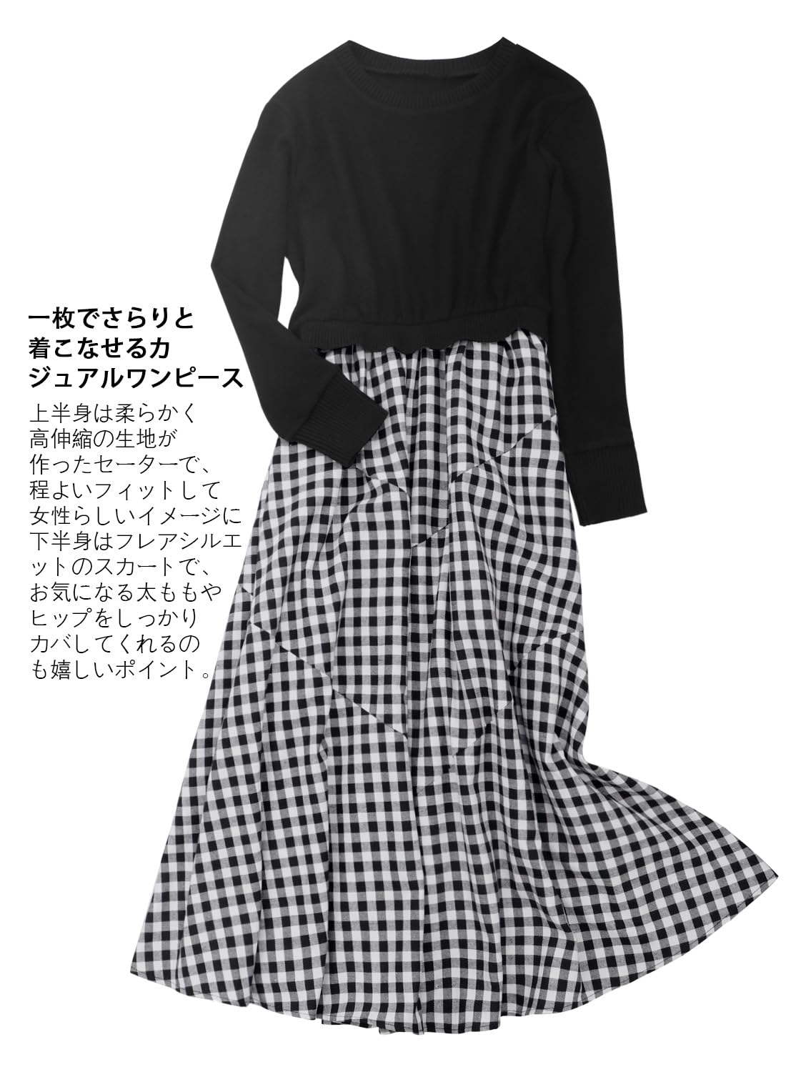 ワンピース レディース ニットトップス+フレア裾 切替え ロング 柔らかい 伸縮性 リブネック 可愛い おしゃれ 女性らしい 大きいサイズ 体型カバー 着瘦せ カジュアル 通勤
