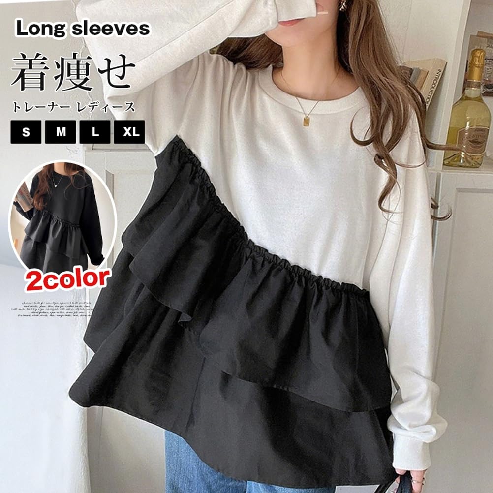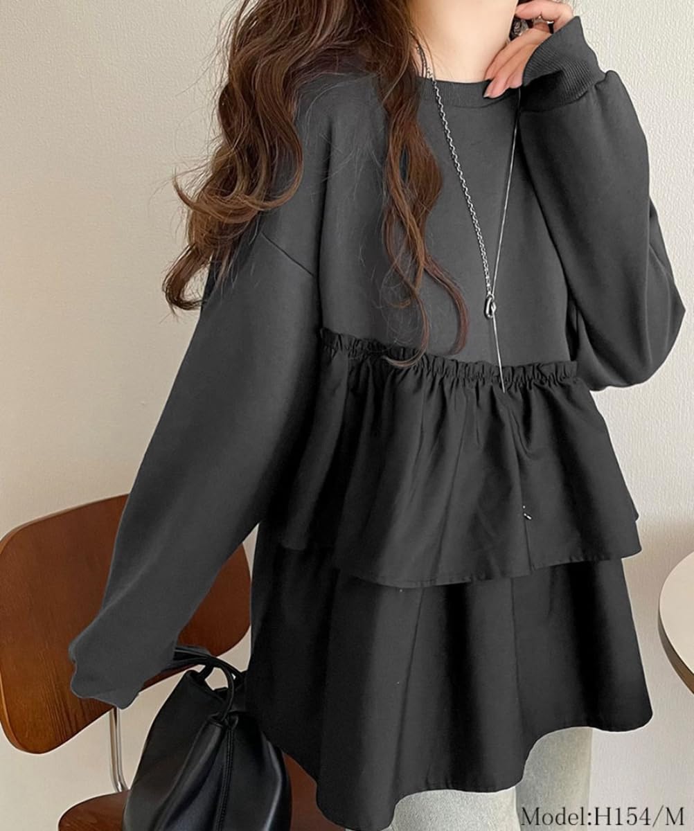 シャツ レディース トップス 長袖 カットソー ブラウス レイヤード風 プルオーバー ゆったり 体型カバー 切り替え 可愛い 春 秋 冬 シンプル 20代 30代 40代 50代 カジュアル 着痩せ 不規則