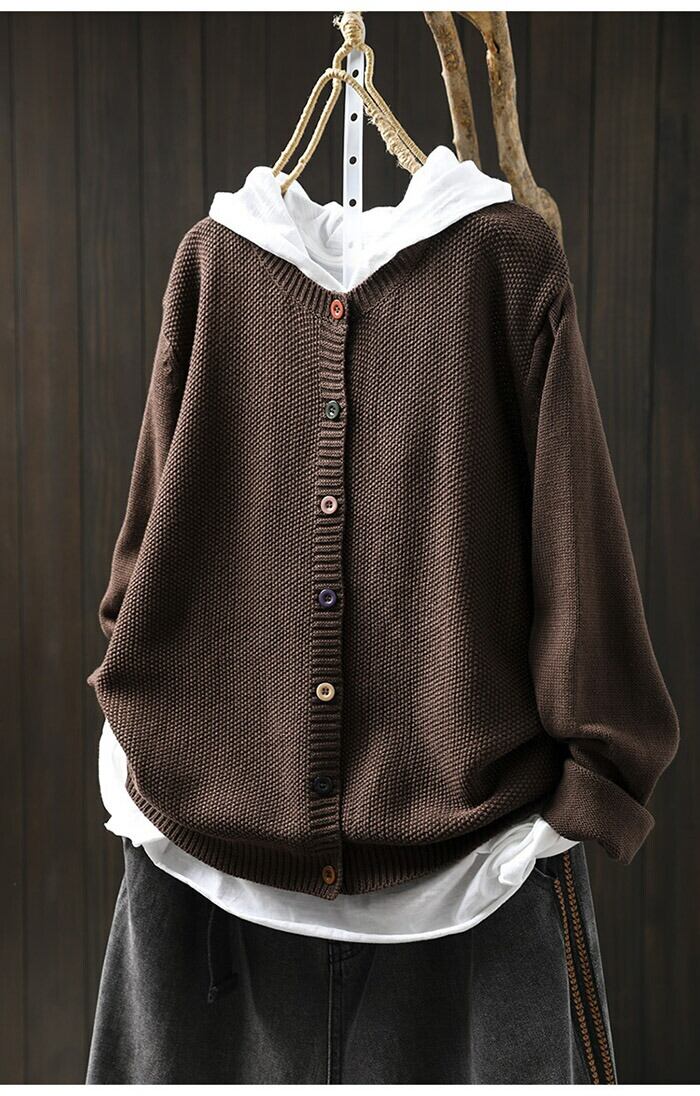 ニットカーディガン レディース 春 秋 冬 秋冬 長袖 コットンニットカーディガン カーディガン クルーネック ニット ゆるカーディガン ニットカーデ 羽織り 上着 ゆったり シンプル 無地 カジュアル 大人可愛い 女性