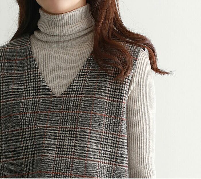 ワンピース 秋 グレンチェック レディース ジャンパースカート 大人 ジャンスカ Vネック オールインワン ワンピ ノースリーブ タンクワンピース チェック 重ね着 おしゃれ きれいめ 大人 可愛い 着痩せ 春 秋 冬