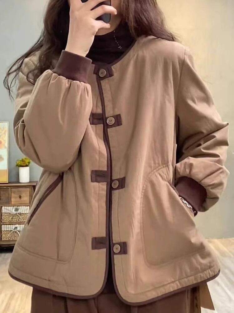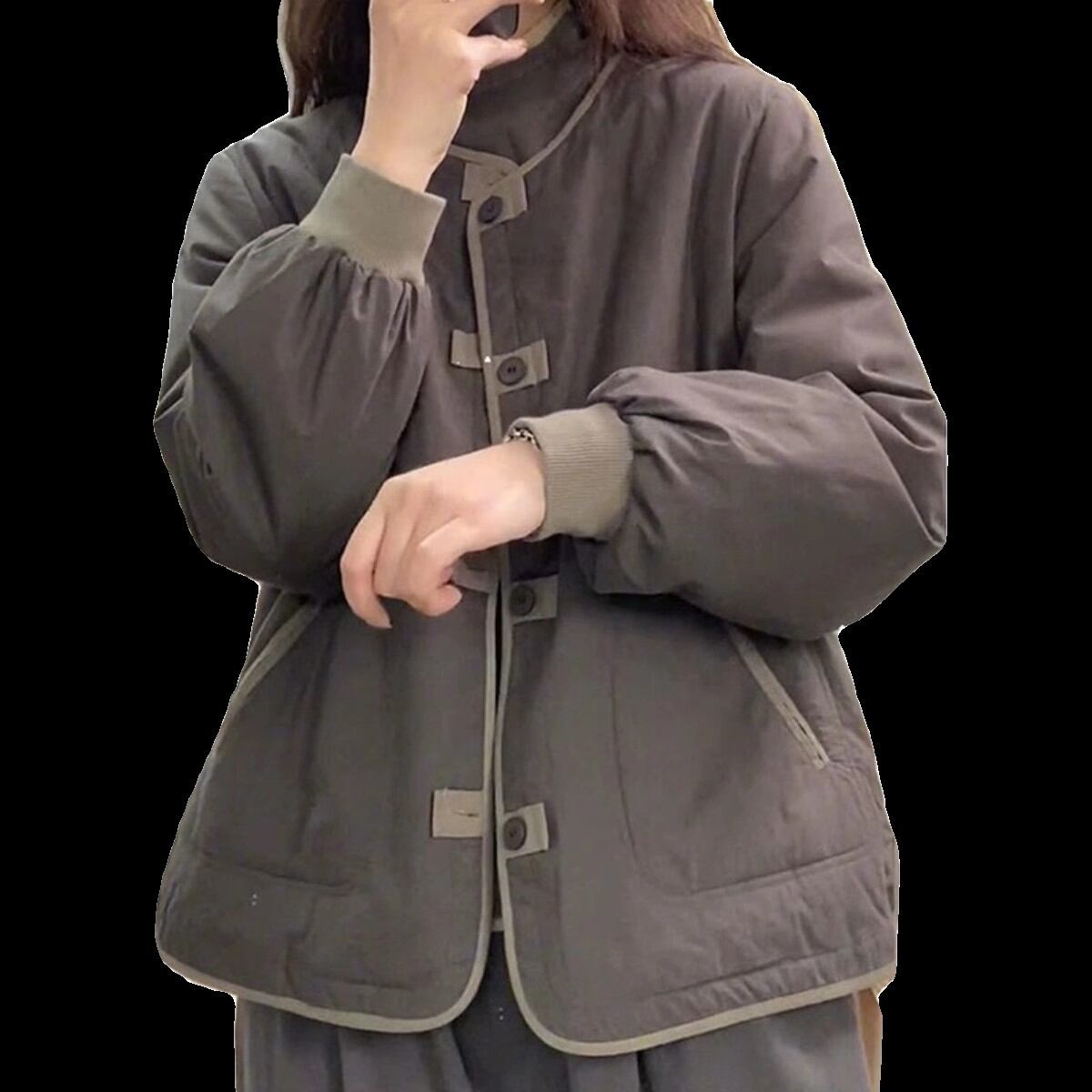 薄手 キルティング ジャケット レディース 冬 ショート丈 チャイナボタン カラーブロック 軽量 撥水 モード