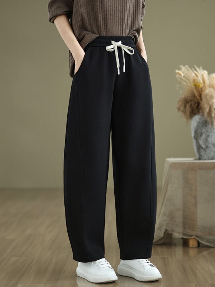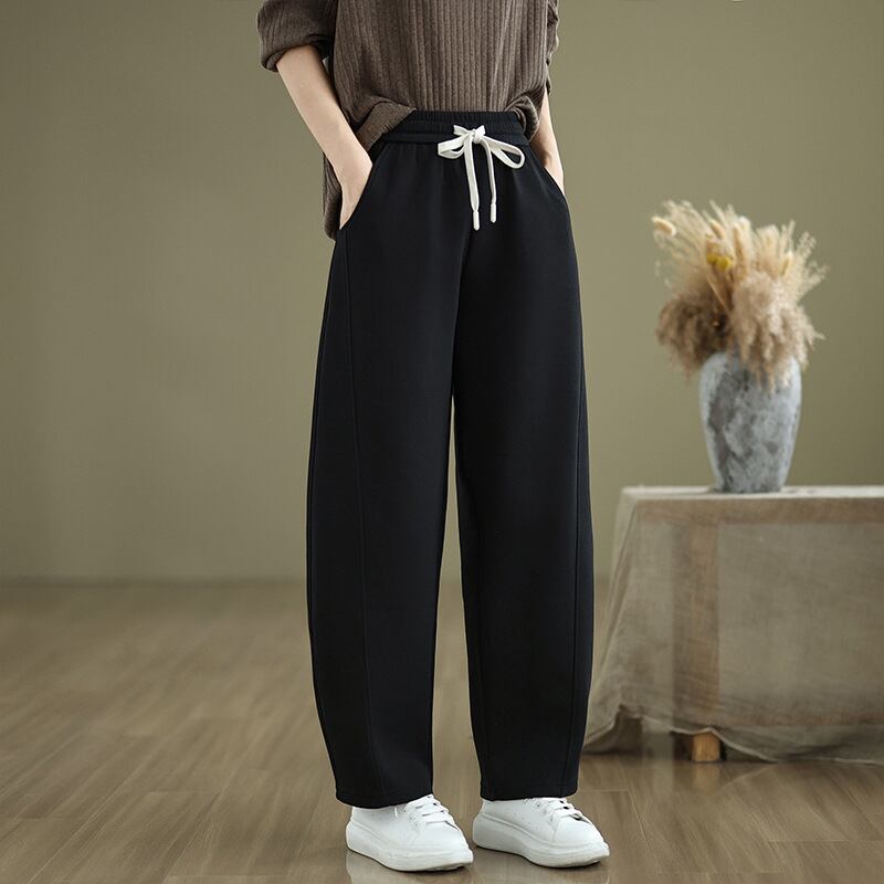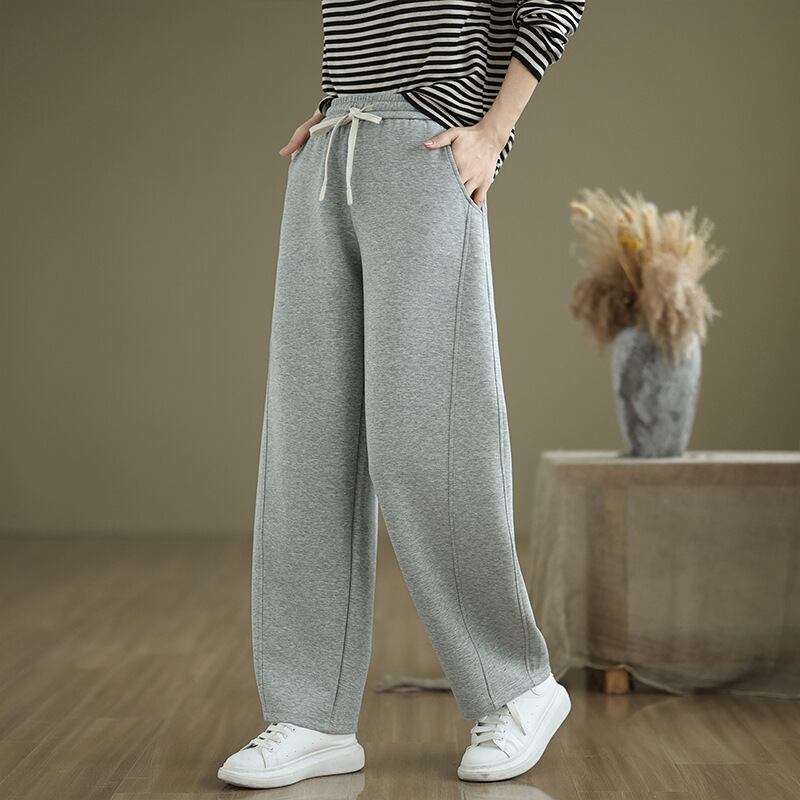 レディース 全棉ニットスウェットパンツ 冬用 ハイウエスト スリム効果付き スポーツスタイル ストレートカット カジュアル 万能搭配可能 ワイドパンツ 大サイズ(又は「ロングパンツ」) シーソーパンツ 翻译说明
