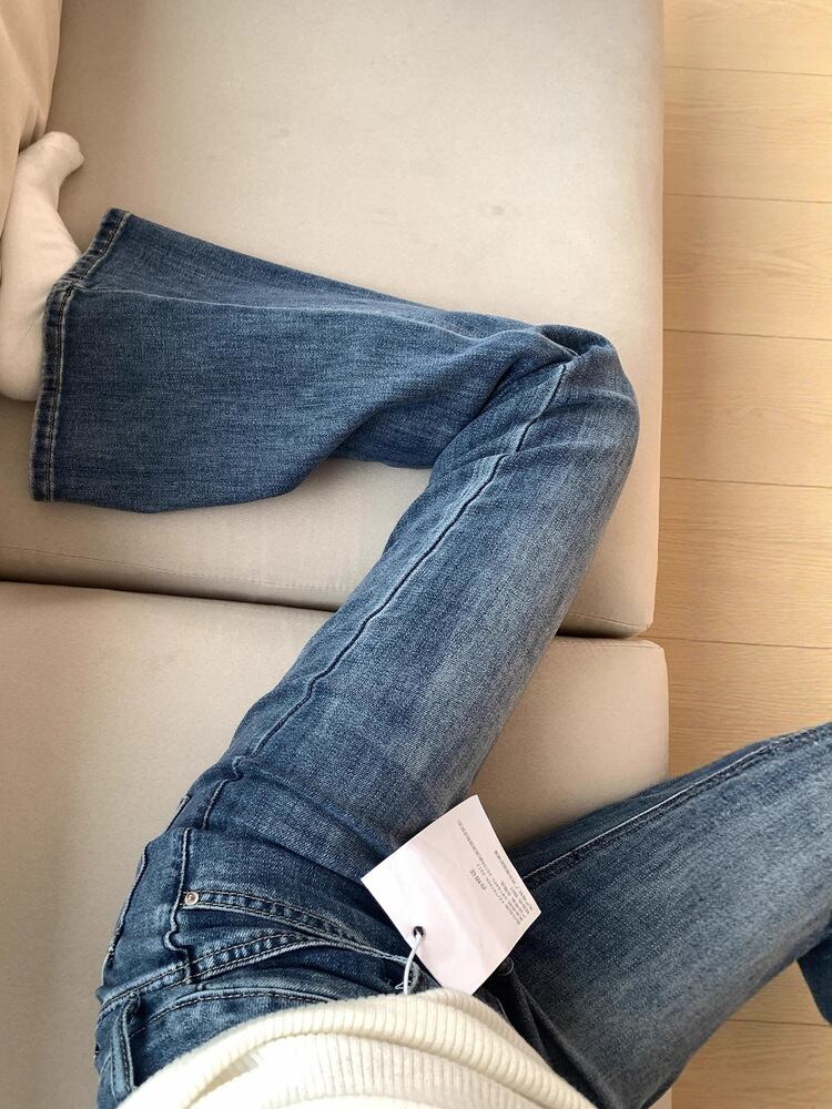复古高腰微喇牛仔裤女秋季大码胖弹力修身显瘦不贴腿喇叭长裤子